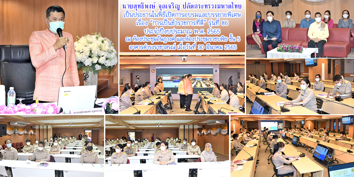 ปมท.เปิดการอบรมและบรรยายพิเศษ เรื่อง “การเป็นข้าราชการที่ดี” รุ่นที่ 86 โดย กองสารนิเทศ สำนักงานปลัดกระทรวงมหาดไทย 31 มีนาคม 2022 31 มีนาคม 2022 7 ยอดวิว ก่อนหน้า ข่าว Breaking News 30 มีนาคม 2565 ถัดไป ปลัดกระทรวงมหาดไทยติวเข้ม “การเป็นข้าราชการที่ดี” ให้กับข้าราชการบรรจุใหม่ เน้นย้ำ “ครองตน ครองคน ครองงาน ครองใจ” มุ่งมั่นปฏิบัติราชการด้วยแรงปรารถนา Change for Good สร้างสิ่งที่ดีให้เกิดขึ้นกับประเทศชาติและประชาชนอันเป็นที่รักยิ่งอย่างยั่งยืน บทความที่เกี่ยวข้อง “รมช.มท.ก้อย-ศศิธร” แถลงข่าวมหกรรมของข... 15 ธันวาคม 2025 สมเด็จพระกนิษฐาธิราชเจ้า กรมสมเด็จพระเทพรัตนราชสุด... 15 ธันวาคม 2025 รมช.มหาดไทย “ทรงศักดิ์ ทองศรี” ลงพื้นท... 10 ธันวาคม 2025 รองปลัด มท. เปิดประชุมเจ้าหน้าที่อาวุโสอาเซียนด้าน... 10 ธันวาคม 2025 “อรรษิษฐ์ สัมพันธรัตน์” ปลัดกระทรวงมหา... 10 ธันวาคม 2025 📌มท.ศักดิ์ดา นั่งหัวโต๊ะกองบัญชาการป้องกัน... 7 ธันวาคม 2025 “นายกฯ อนุทิน” เดินทางถึงท่าอากาศยานทห... 6 ธันวาคม 2025 สมเด็จพระเจ้าลูกเธอ เจ้าฟ้าสิริวัณณวรี นารีรัตนราช... 3 ธันวาคม 2025 สมเด็จพระเจ้าลูกเธอ เจ้าฟ้าสิริวัณณวรี นารีรัตนราช... 2 ธันวาคม 2025