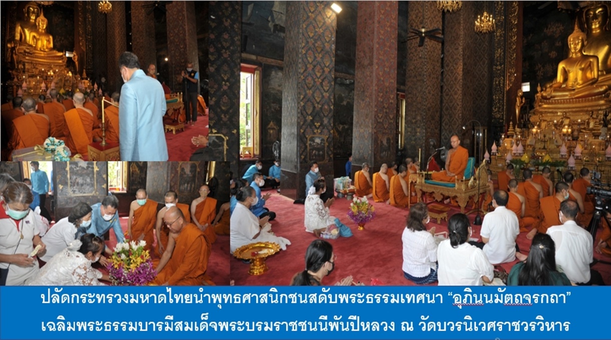 เมื่อวันที่ 26 ส.ค. 2565 นายสุทธิพงษ์ จุลเจริญ ปลัดกระทรวงมหาดไทย พร้อมด้วย นายอรรษิษฐ์ สัมพันธรัตน์ รองปลัดกระทรวงมหาดไทย หัวหน้าส่วนราชการในสำนักงานปลัดกระทรวงมหาดไทย ข้าราชการ ครู นักเรียน ผู้บริหารและเจ้าหน้าที่มูลนิธิมหามกุฏราชวิทยาลัย ในพระบรมราชูปถัมภ์และพุทธศาสนิกชนเข้าร่วมสดับพระธรรมเทศนาเฉลิมพระบารมีใน “อุภินนมัตถจรกถา” เฉลิมพระธรรมบารมีสมเด็จพระนางเจ้าสิริกิติ์พระบรมราชินีนาถ พระบรมราชชนนีพันปีหลวง ณ พระอุโบสถ วัดบวรนิเวศราชวรวิหาร