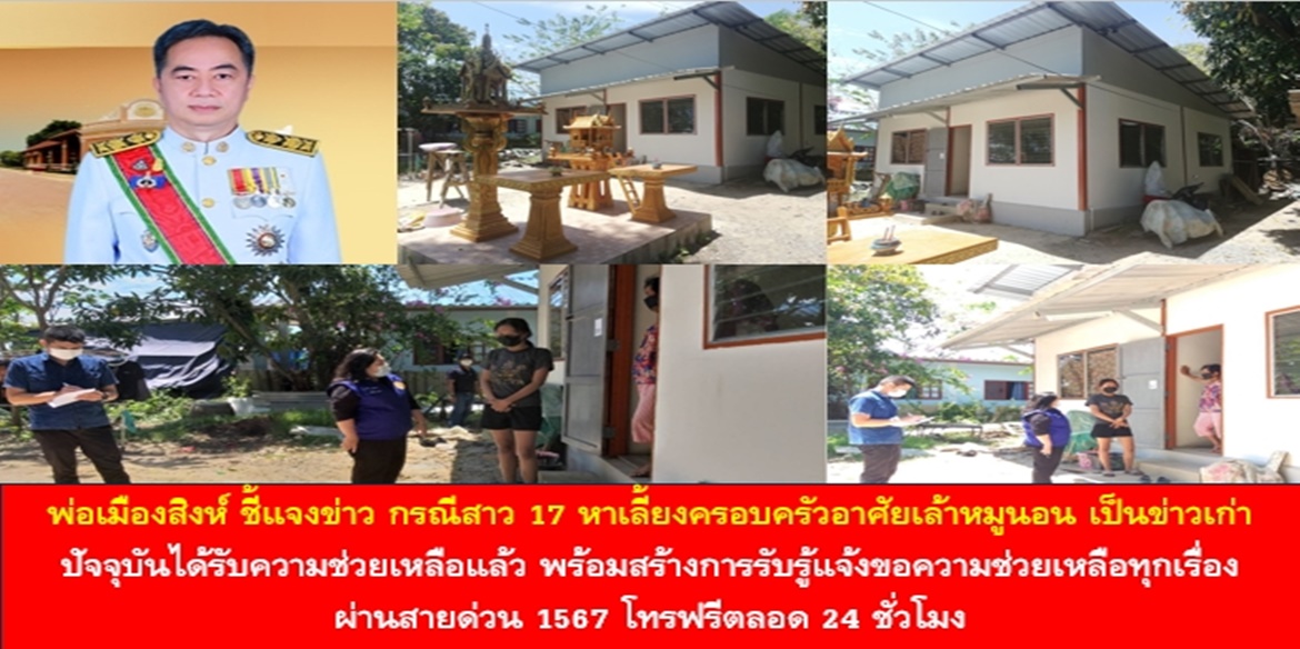 วันนี้ (18 ต.ค. 65) นายสุพจน์ ยศสิงห์คำ ผู้ว่าราชการจังหวัดสิงห์บุรี เปิดเผยถึงกรณีมีสื่อออนไลน์ เสนอข่าวว่า สาวน้อยวัย 17 ปี พื้นที่อำเภอบางระจัน หาเลี้ยงครอบครัว ต้องอาศัยอยู่ในเล้าหมูเนื่องจากบ้านพังเพราะน้ำท่วม โดยมีรายได้จากเบี้ยยังชีพคนชรา และรับจ้างก่อสร้างประทังชีวิต