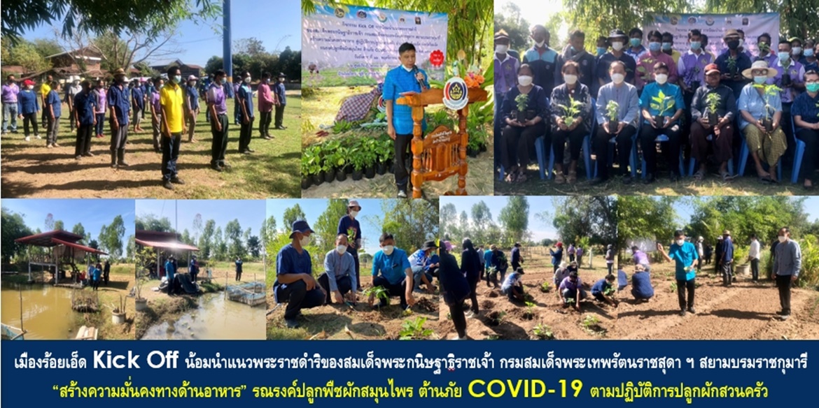 “โดยในวันนี้ ที่แปลงศูนย์เรียนรู้ HLM นายบุญธรรม อินอุ่นโชติ บ้านโนนใหญ่ หมู่ที่ 9 ตำบลสีแก้ว อำเภอเมืองร้อยเอ็ด จังหวัดร้อยเอ็ด ที่ทำการปกครองอำเภอเมืองร้อยเอ็ด ได้ร่วมกับภาคีเครือข่าย น้อมนำพระราชดำริ สมเด็จพระกนิษฐาธิราชเจ้า กรมสมเด็จพระเทพรัตนราชสุดาฯ สยามบรมราชกุมารี สร้างความมั่นคงทางด้านอาหาร สู่ปฏิบัติการปลูกผักสวนครัว รอบ 2 ต่อเนื่อง ด้วยการรณรงค์ปลูกพืชผักสมุนไพร ต้านภัย COVID-19 มุ่งเน้นการพึ่งพาตนเองและเสริมสร้างความสามัคคีของคนในชุมชน และรณรงค์ให้ปลูกผักสวนครัวทุกครัวเรือน เพื่อพัฒนาหมู่บ้านให้ยั่งยืน โดยขับเคลื่อนการดำเนินงานตามขั้นตอน 6 กระบวนงาน ประกอบด้วย 1) ผู้นำแบบตัวอย่าง ที่เห็นจริง 2) ผู้นำต้องทำก่อน 3) นักพัฒนา 3 ประสานกลไกการขับเคลื่อนปฏิบัติ 4) ทุกครัวเรือน คือ คลังอาหาร ทุกหมู่บ้าน คือ ศูนย์แบ่งปัน 5) ทักษะชีวิตใหม่ เยาวชนไทยสร้างอาหารเป็น 6) ถอดรหัสการพัฒนาชุมชนท้องถิ่นจัดการตนเองในการสร้างความมั่นคงทางอาหารอย่างยั่งยืน โดยมีหัวหน้าส่วนราชการ ข้าราชการ พนักงาน เจ้าหน้าที่ กำนัน ผู้ใหญ่บ้าน ผู้นำท้องที่ ผู้บริหารองค์กรปกครองท้องถิ่น ภาคีเครือข่าย “โคก หนอง นา” และพี่น้องประชาชน ร่วมกิจกรรมเป็นจำนวนมาก” ผวจ.ร้อยเอ็ด กล่าวเน้นย้ำ