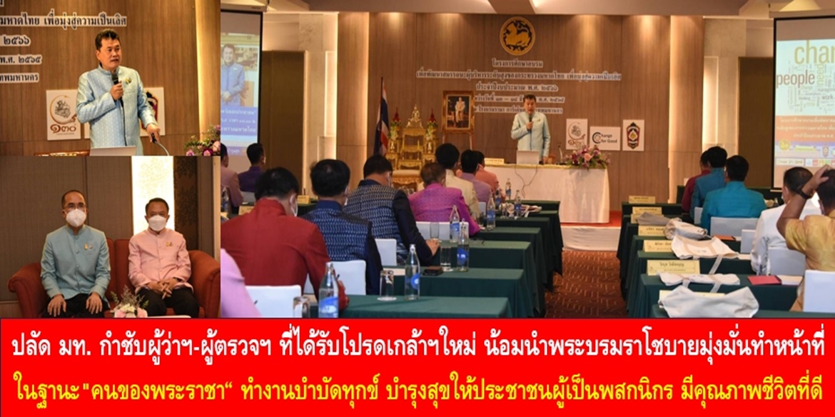 “ขอให้ผู้ว่าราชการจังหวัดมุ่งมั่นทำหน้าที่ในฐานะ “คนของพระราชา” ผู้บำบัดทุกข์ บำรุงสุข ให้กับพี่น้องประชาชนผู้เป็นพสกนิกรของพระองค์ท่านให้ได้มีคุณภาพชีวิตที่ดีอย่างยั่งยืน ด้วยการยึดหลักการของคำว่า “บูรณาการ” ในทุกเรื่อง เช่น การน้อมนำพระราชดำรัสของพระบาทสมเด็จพระบรมชนกาธิเบศร มหาภูมิพลอดุลยเดชมหาราช บรมนาถบพิตร “น้ำคือชีวิต” ไปบูรณาการทุกภาคีเครือข่ายในพื้นที่ว่าจะทำอย่างไร ทำให้เราสามารถเก็บน้ำในฤดูฝนเพื่อแบ่งมวลน้ำไม่ให้น้ำไปท่วมบ้านเรือนประชาชน และในฤดูแล้งมีน้ำไปใช้ในการประกอบอาชีพ และเสริมด้วยธนาคารน้ำใต้ดินระบบปิดในบางจุดที่น้ำท่วมขัง น้ำไหลผ่าน ซึ่งทั้งหลายจะเกื้อกูลไปสู่การพัฒนาคุณภาพชีวิตโดยใช้ทฤษฎีใหม่ประยุกต์สู่โคก หนอง นา ซึ่งจะเป็นประโยชน์กับพี่น้องประชาชนทุกพื้นที่ รวมถึงการส่งเสริมผ้าไทย มิใช่สะท้อนเพียงเรื่องของการแต่งกาย แต่มันเป็นการบูรณาการในทุกขั้นตอนจนกระทั่งปลายน้ำ คือ ผู้คนมีคุณภาพชีวิตที่ดีได้อย่างไร ด้วยการส่งเสริมหลักปรัชญาของเศรษฐกิจพอเพียง ทำให้ผู้ประกอบการ ช่างทอผ้า เข้าใจหลักการพึ่งพาตนเอง ทั้งการปลูกฝ้าย ปลูกหม่อน เลี้ยงไหม ปลูกต้นไม้ให้สีธรรมชาติ หรือแม้แต่เรื่องการส่งเสริมการรับชม “โขนภาพยนตร์” ที่ผู้ว่าราชการจังหวัดก็สามารถบูรณาการทั้งมิติการศึกษา วัฒนธรรม ศิลปะ ประเพณี อาทิ ส่งเสริมให้เด็กนักเรียนที่ไปรับชมโขนภาพยนตร์ได้มีกิจกรรมส่งเสริมการเรียนรู้เพิ่มเติม ทั้งการเขียนบทความ เขียนสรุปความ การวาดภาพระบายสี การสร้างเสริมการเรียนรู้อื่น ๆ เป็นต้น ซึ่งสิ่งเหล่านี้ จะทำให้การทำหน้าที่ของทุกท่านเป็นการทำหน้าที่เพื่อยังประโยชน์ให้พี่น้องประชาชนได้มีคุณภาพชีวิตที่ดีอย่างยั่งยืน” นายสุทธิพงษ์ฯ กล่าวในช่วงท้าย