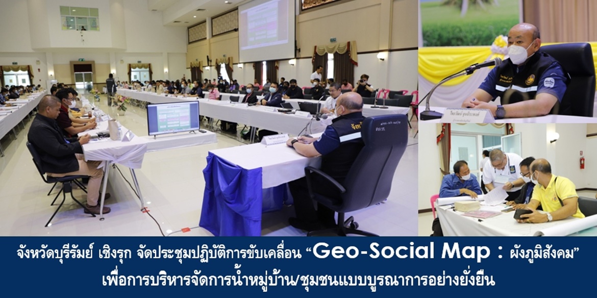 “ผังภูมิสังคม (Geo-Social Map) มีที่มาอันประกอบด้วยปัจจัยสำคัญ 2 ส่วน คือ Geography และ Social ซึ่ง Geography คือลักษณะทางกายภาพของพื้นที่ ส่วน Social คือลักษณะทางสังคมและชุมชน โดยมีประชาชนในพื้นที่นั้น ๆ จะเป็นผู้ที่สะท้อนปัญหาทางสังคมอันเกิดจากข้อจำกัดหรือปัญหาทางกายภาพ จึงเป็นที่มาของคำว่า “ผังภูมิสังคม หรือ Geo-Social Map” ซึ่งผังภูมิสังคมจะมีชั้นของข้อมูลต่าง ๆ ที่เกี่ยวข้องจำนวนมาก แต่สำหรับนโยบายของกระทรวงมหาดไทยในการจัดทำผังภูมิสังคมครั้งนี้ จะเป็นการจัดทำผังภูมิสังคมเพื่อการบริหารจัดการน้ำหมู่บ้าน/ชุมชน แบบบูรณาการอย่างยั่งยืน (Geo-Social Map) โดยจะให้ประชาชนในพื้นที่เป็นผู้นำทางในการให้ข้อมูลต่าง ๆ โดยกรมโยธาธิการและผังเมืองจะเป็นหน่วยงานที่นำข้อมูลไปใช้ในการวิเคราะห์และวางแผนปฏิบัติงานตามกรอบภารกิจของแต่ละหน่วยงาน ในสังกัดกระทรวงมหาดไทยเพื่อแก้ไขปัญหาน้ำท่วม น้ำแล้ง และพัฒนาคุณภาพชีวิตให้กับประชาชนในพื้นที่หมู่บ้าน/ชุมชนตำบล รวมทั้งนำข้อมูลที่ได้จากการจัดทำผังภูมิสังคมฯ ไปใช้ในการวางแผนขับเคลื่อนงานด้าน “การบำบัดทุกข์ บำรุงสุข” ให้กับประชาชนในพื้นที่ ให้มีคุณภาพชีวิตและความเป็นอยู่ที่ดี ตามหลักปรัชญาเศรษฐกิจพอเพียง อย่างเป็นรูปธรรม” ผวจ.บุรีรัมย์ กล่าว