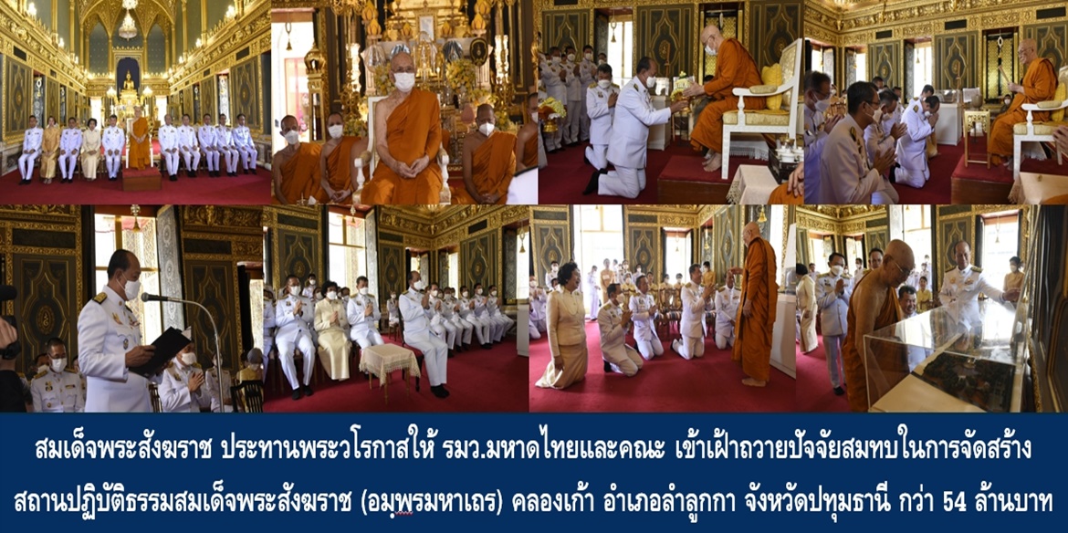 นายสุทธิพงษ์ จุลเจริญ ปลัดกระทรวงมหาดไทย กล่าวว่า สำหรับสถานปฏิบัติธรรมสมเด็จพระสังฆราช (อมฺพรมหาเถร) ตั้งอยู่ ณ คลองเก้า อำเภอลำลูกกา จังหวัดปทุมธานี บนพื้นที่กว่า 127 ไร่ 1 งาน 59.7 ตร.วา ที่ได้รับการออกแบบจากอาจารย์เผ่า สุวรรณศักดิ์ศรี ศิลปินแห่งชาติสาขาทัศนศิลป์ (สถาปัตยกรรมไทย) และทีมอาศรมศิลป์ โดยมีลักษณะศิลปกรรมแบบไทยประยุกต์ เน้นธรรมชาติให้มากที่สุด พร้อมกับแบ่งพื้นที่เป็นสถานที่ปฏิบัติธรรม ตำหนักสมเด็จพระสังฆราช ศูนย์สุขภาพ เจดีย์และพิพิธภัณฑ์ โรงเรียนพระปริยัติธรรม วิหารธรรม ที่พักสงฆ์และที่พักของฆราวาสที่มาปฏิบัติธรรมแยกเป็นเขตสังฆาวาสและฆราวาส เพื่อถวายเป็นพุทธบูชา ธรรมบูชา และสังฆบูชา มีความเรียบง่าย เน้นประโยชน์ใช้สอย อีกทั้งยังแบ่งพื้นที่ใช้สอยเพื่อทำการเกษตรทฤษฎีใหม่ และศูนย์การเรียนรู้ การดำเนินชีวิตไม่เบียดเบียนธรรมชาติและพึ่งตนเอง โดยอัญเชิญพระนามของสมเด็จพระอริยวงศาคตญาน (อมฺพรมหาเถร) สมเด็จพระสังฆราช สกลมหาสังฆปริณายก เจ้าอาวาสวัดราชบพิธสถิตมหาสีมาราม ใช้ชื่อว่า “สถานปฏิบัติธรรมสมเด็จพระสังฆราช (อมฺพรมหาเถร) ” เพื่อสร้างรมณียสถานอันสัปปายะต่อการบำเพ็ญสมณธรรมและเจริญจิตภาวนา ทั้งยังเป็นศูนย์การเรียนรู้พุทธศาสนาสำหรับพุทธศาสนิกชนทั่วไป ทั้งนี้ ผู้มีจิตศรัทธาสามารถร่วมบริจาคทุนโดยเสด็จพระกุศลก่อสร้างสถานปฏิบัติธรรมฯ ได้ที่บัญชี “วัดราชบพิธ เพื่อสร้างสถานปฏิบัติธรรม สมเด็จพระสังฆราช (อมฺพรมหาเถร) คลอง 9 จังหวัดปทุมธานี” ได้แก่ ธนาคารออมสิน สาขามหาดไทย เลขที่บัญชี 020-2-84356-654 หรือธนาคารกรุงไทย สาขาถนนเฟื่องนคร เลขที่บัญชี 159-0-10328-9 หรือธนาคารไทยพาณิชย์ สาขาตรีเพชร เลขที่บัญชี 006-2-89900-5