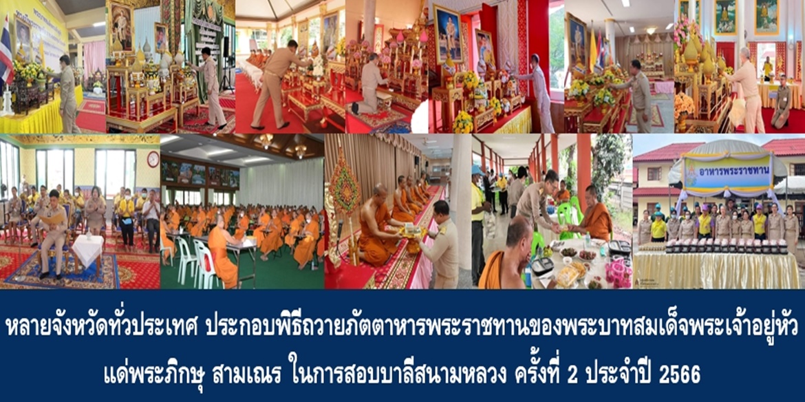 เมื่อวันที่ 16 เม.ย. 66 นายสุทธิพงษ์ จุลเจริญ ปลัดกระทรวงมหาดไทย เปิดเผยว่า พระบาทสมเด็จพระเจ้าอยู่หัว ทรงพระกรุณาโปรดเกล้าฯ พระราชทานภัตตาหารถวายแด่พระภิกษุ สามเณร ผู้เข้าสอบบาลีสนามหลวง และกรรมการกำกับห้องสอบ ครั้งที่ 2 ปี พ.ศ. 2566 โดยมีผู้เข้าสอบชั้นประโยค 1 – 2 ถึงเปรียญธรรม 4 ประโยค ในระหว่างวันที่ 15 – 17 เมษายน 2566 ในส่วนภูมิภาค จำนวน 19 สนามสอบทั่วประเทศ