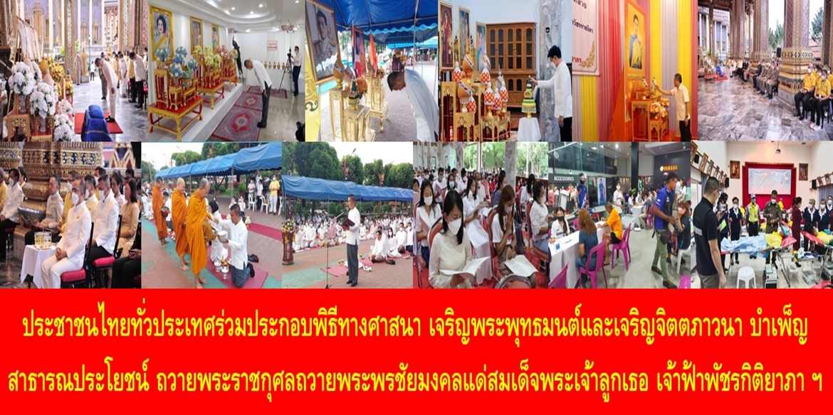 5. จังหวัดนครราชสีมา วัดป่าศรัทธารวม อำเภอเมืองนครราชสีมา นายสยาม ศิริมงคล ผู้ว่าราชการจังหวัดนครราชสีมา เป็นประธานในพิธีเจริญพระพุทธมนต์และเจริญจิตตภาวนา เพื่อถวายพระราชกุศลถวายพระพรชัยมงคลแด่สมเด็จพระเจ้าลูกเธอ เจ้าฟ้าพัชรกิติยาภา นเรนทิราเทพยวดี กรมหลวงราชสาริณีสิริพัชร มหาวัชรราชธิดา ให้ทรงหายจากพระอาการประชวรและทรงมีพระพลานามัยสมบูรณ์แข็งแรงในเร็ววัน โดยมีหัวหน้าส่วนราชการ ผู้นำท้องถิ่นท้องที่ และพุทธศาสนิกชนในพื้นที่ร่วมพิธี