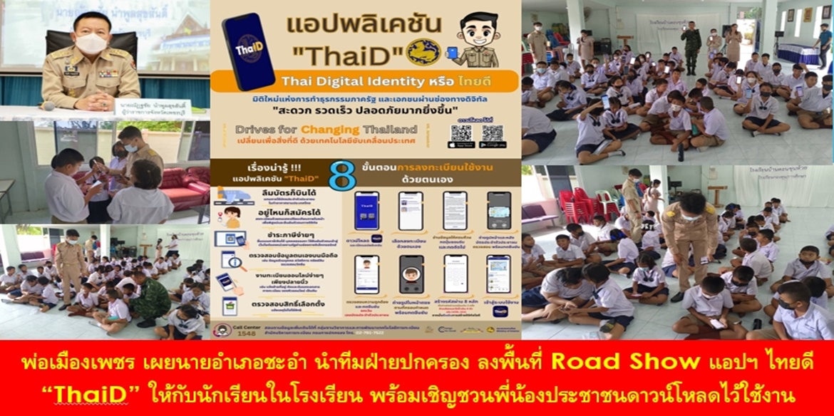 นายณัฏฐชัย นำพูลสุขสันติ์ ผู้ว่าราชการจังหวัดเพชรบุรี กล่าวต่ออีกว่า เพื่อให้การขับเคลื่อนนโยบายของรัฐบาลและกระทรวงมหาดไทยในการพัฒนางานบริการประชาชนด้วยรัฐบาลดิจิทัลผ่านแอปพลิเคชัน ThaiD เกิดประโยชน์อย่างกว้างขวางและพี่น้องประชาชนได้รับประโยชน์อย่างทั่วถึง จังหวัดเพชรบุรี โดยที่ทำการปกครองจังหวัดเพชรบุรี ได้มอบหมายให้ นายกองโท สมศักดิ์ แย้มพันธุ์นุ้ย นายอำเภอชะอำ พร้อมด้วย ปลัดอำเภอ เจ้าหน้าที่ฝ่ายปกครอง ทหาร ตลอดจนภาคีเครือข่ายในพื้นที่ ร่วมจัดกิจกรรมประชาสัมพันธ์ แนะนำแอปพลิเคชัน ThaiD ให้แก่น้อง ๆ นักเรียนโรงเรียนบ้านดอนขุนห้วย อำเภอชะอำ จังหวัดเพชรบุรี เพื่อให้นักเรียนได้ทราบและเห็นถึงประโยชน์ของการติดตั้ง พร้อมวิธีการลงทะเบียนการใช้งาน โดยได้รับความสนใจจากนักเรียนร่วมดาวน์โหลดแอปพลิเคชัน ThaiD เป็นจำนวนมาก และยังพบว่า นักเรียนสามารถเข้าใจวิธีการใช้งานแอปพลิเคชัน ThaiD ได้อย่างรวดเร็ว เข้าถึงบริการที่หลากหลายได้ในเวลาเพียงครู่เดียว ซึ่งนับว่าเป็นกระบวนการเรียนรู้ของเด็กรุ่นใหม่ที่ชีวิตผูกพันใกล้ชิดกับโทรศัพท์มือถือสมาร์ทโฟนรวมถึงโปรแกรมและระบบต่าง ๆ ได้ด้วยระยะเวลาสั้น ๆ โดยทีมฯ Roadshow ยังได้เน้นย้ำฝากไปยังน้อง ๆ ทุกคน ในการช่วยขยายผลไปยังสมาชิกในครอบครัวที่มีมือถือสมาร์ทโฟน ทั้งคุณพ่อ คุณแม่ รวมถึงเพื่อนบ้านใกล้เคียง เพื่อให้ทุกคนได้ใช้งาน ลดการเดินทางไปยังที่ว่าการอำเภอ หรือเทศบาล อันจะทำให้ประหยัดค่าใช้จ่าย ประหยัดเวลา และคุ้มค่าอีกด้วย