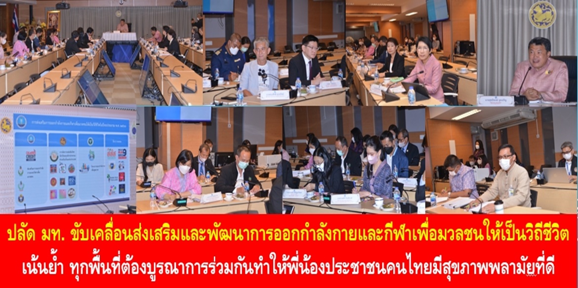 นายสุทธิพงษ์ จุลเจริญ ปลัดกระทรวงมหาดไทย กล่าวต่ออีกว่า ผู้ว่าราชการจังหวัด คือผู้ทำหน้าที่ “นายกรัฐมนตรีของจังหวัด” และนายอำเภอ คือผู้ทำหน้าที่ “นายกรัฐมนตรีของอำเภอ” รวมไปถึงผู้นำองค์กรปกครองส่วนท้องถิ่นทุกคนต้องเป็นผู้นำที่ลุกขึ้นมาทำก่อนในการออกกำลังกายเพื่อที่จะเป็นแรงบันดาลใจให้พี่น้องประชาชนได้ปฏิบัติตาม รวมทั้งต้องคอยกำกับและติดตามการส่งเสริมและสนับสนุนให้ประชาชนออกกำลังกายและเล่นกีฬาให้เป็นวิถีชีวิตอย่างต่อเนื่อง ซึ่งจากการติดตามงานที่มอบหมายการขับเคลื่อนส่งเสริมและพัฒนาการออกกำลังกายและกีฬาเพื่อมวลชนให้เป็นวิถีชีวิตจากการประชุมครั้งที่ผ่านมา ได้มีการดำเนินการไปแล้วหลายจังหวัด นับเป็นการเริ่มต้นที่ดีในการที่จะช่วยกัน Change for Good ให้มีสิ่งที่ดีเกิดขึ้นกับพี่น้องประชาชน โดยเริ่มต้นให้ผู้นำเชิญชวนให้ชาวบ้านออกกำลังกาย 3 – 4 วันต่อสัปดาห์หรือวันเว้นวัน ทำให้คนเห็นความสำคัญของการออกกำลังกาย เกิดภาพการเล่นกีฬา การออกกำลังกายในพื้นต่าง ๆ เช่น สวนหย่อม เส้นทางเดินธรรมชาติ ลานกีฬาในสถานศึกษา ลานวัด/ศาสนา ซึ่งคณะอนุกรรมการฯ ต้องมีการประชุมหารือกันทุกเดือน เพื่อให้พื้นที่มีโอกาสนำเอาแนวทางไปขับเคลื่อนให้เกิดผลการปฏิบัติอย่างเป็นรูปธรรม ให้มีกลุ่มคนทุกตำบล ทุกหมู่บ้านมาร่วมกันออกมาออกกำลังกาย รวมไปถึงผู้นำท้องถิ่นท้องที่ต้องช่วยกันอำนวยความสะดวกในเรื่องของสถานที่ งบประมาณ อุปกรณ์ที่จำเป็น และการดูแลความปลอดภัย เช่น เรื่องของแสงส่องสว่างให้เพียงพอ การปลุกกระแสการจัดกิจกรรมออกกําลังกายในทุกท้องถิ่น ทุกอำเภอ ทุกจังหวัด โดยขอความร่วมมือทางสาธารณสุขจังหวัดช่วยส่งเสริมกิจกรรมให้คนเข้าใจเรื่องการดูแลสุขภาพมากขึ้น ซึ่งหากมีพี่น้องประชาชนเข้ามาร่วมออกกำลังกายเพิ่มมากขึ้นแล้วจึงต่อยอดด้วยการทำเทคโนโลยีผ่านแพลตฟอร์มและแอปพลิเคชันต่างๆ เก็บข้อมูลสุขภาพเพื่อใช้เป็นฐานข้อมูลของหน่วยงานที่เกี่ยวข้องและเป็นประโยชน์กับพี่น้องประชาชนต่อไป