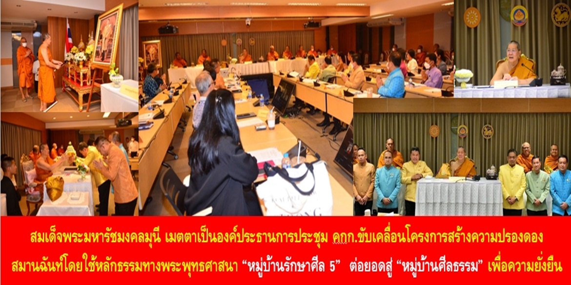 นายสุทธิพงษ์ฯ กล่าวต่ออีกว่า หลักสำคัญของการประชุมฯ ในครั้งนี้ คือการที่จะทำอย่างไรให้ทุกหมู่บ้านที่ไม่ว่าจะนับถือศาสนาอะไรได้รับประโยชน์จากการขับเคลื่อนของทุกภาคส่วน โดยทางกระทรวงมหาดไทย ได้ออกคำสั่งกระทรวงมหาดไทย ที่ 2145/2566 เรื่อง แต่งตั้งคณะกรรมการอำนวยการ โครงการสร้างความปรองดองสมานฉันท์ โดยใช้หลักธรรมทางพระพุทธศาสนา “หมู่บ้านรักษาศีล 5” และคำสั่งกระทรวงมหาดไทย ที่ 2146/2566 เรื่อง แต่งตั้งคณะกรรมการขับเคลื่อน โครงการสร้างความปรองดองสมานฉันท์ โดยใช้หลักธรรมทางพระพุทธศาสนา “หมู่บ้านรักษาศีล 5 ” โดยมีแนวทางการขับเคลื่อน บูรณาการการดำเนินงานโครงการสร้างความปรองดองสมานฉันท์ โดยใช้หลักธรรมทางพระพุทธศาสนา “หมู่บ้านรักษาศีล 5” ร่วมกับโครงการของกระทรวงมหาดไทยที่ดำเนินการในระดับพื้นที่ เช่น โครงการหนึ่งตำบล หนึ่งหมู่บ้านยั่งยืน (Sustainable Village) เพื่อเฉลิมพระเกียรติ สมเด็จพระเจ้าลูกเธอ เจ้าฟ้าสิริวัณณวรี นารีรัตนราชกัญญา ของกรมการปกครอง โครงการหมู่บ้านเศรษฐกิจพอเพียง โครงการหมู่บ้านแผ่นดินธรรม แผ่นดินทอง (หมู่บ้านอยู่เย็น) ของกรมการพัฒนาชุมชน พร้อมแนวทางการสร้างความมั่นคงทางอาหาร เช่น “บ้านนี้มีรักปลูกผักกินเอง” และ “ทางมีผลผู้คนรักกัน” ตามแนวพระราชดำริของสมเด็จพระกนิษฐาธิราชเจ้า กรมสมเด็จพระเทพรัตนราชสุดา ฯ สยามบรมราชกุมารี สู่ปฏิบัติการปลูกผักสวนครัว เพื่อสร้างความมั่นคงทางอาหาร การทำขยะเปียกลดโลกร้อน การจัดการขยะหมู่บ้าน/ชุมชน และสุดท้ายความมั่นคงปลอดภัย (หมู่บ้าน/ชุมชน) เพื่อร่วมกันแก้ปัญหายาเสพติดในหมู่บ้าน/ชุมชนอย่างยั่งยืน