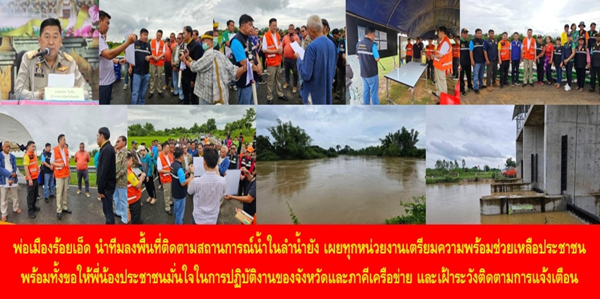 นายทรงพล ใจกริ่ม ผู้ว่าราชการจังหวัดร้อยเอ็ด กล่าวว่า ตนพร้อมด้วยนายธรณิศ เทพแพงตา หัวหน้าสำนักงานป้องกันและบรรเทาสาธารณภัยจังหวัดร้อยเอ็ด นายวสันต์ พรหมดีสาร ผู้อำนวยการโครงการชลประทานร้อยเอ็ด นายอำเภอเสลภูมิ นายกองค์กรปกครองส่วนท้องถิ่น กำนัน ผู้ใหญ่บ้าน ในพื้นที่ และเจ้าหน้าที่ที่เกี่ยวข้อง ร่วมลงพื้นที่บริเวณลำน้ำยัง ที่ประตูระบายน้ำกุดปลาเข็ง ตำบลวังหลวง และพื้นที่บ้านบาก ตำบลวังหลวง อำเภอเสลภูมิ โดยตนได้สั่งการเน้นย้ำให้ทุกฝ่ายทุกพื้นที่ ติดตามสถานการณ์อย่างใกล้ชิด โดยเฉพาะพื้นที่จุดเสี่ยงบริเวณลุ่มริมแม่น้ำ พร้อมทั้งประชาสัมพันธ์ข้อมูลและแจ้งเตือนประชาชนที่อาศัยอยู่ในพื้นที่ริมน้ำให้ทราบล่วงหน้า เพื่อเตรียมความพร้อมในการอพยพและเคลื่อนย้ายสิ่งของได้ทันท่วงทีหากเกิดสถานการณ์ โดยขอให้ปฏิบัติตามคำแนะนำของทางราชการ พร้อมเตรียมแผนเผชิญเหตุรวมทั้งอุปกรณ์ เครื่องจักรกลและกำลังพลให้มีความพร้อมสำหรับการให้ความช่วยเหลือประชาชนในทันที และขอให้ประชาชนอย่าตื่นตระหนก ให้ดำเนินชีวิตตามปกติแต่อย่าประมาท ให้เฝ้าระวังติดตามการแจ้งเตือนอย่างต่อเนื่อง