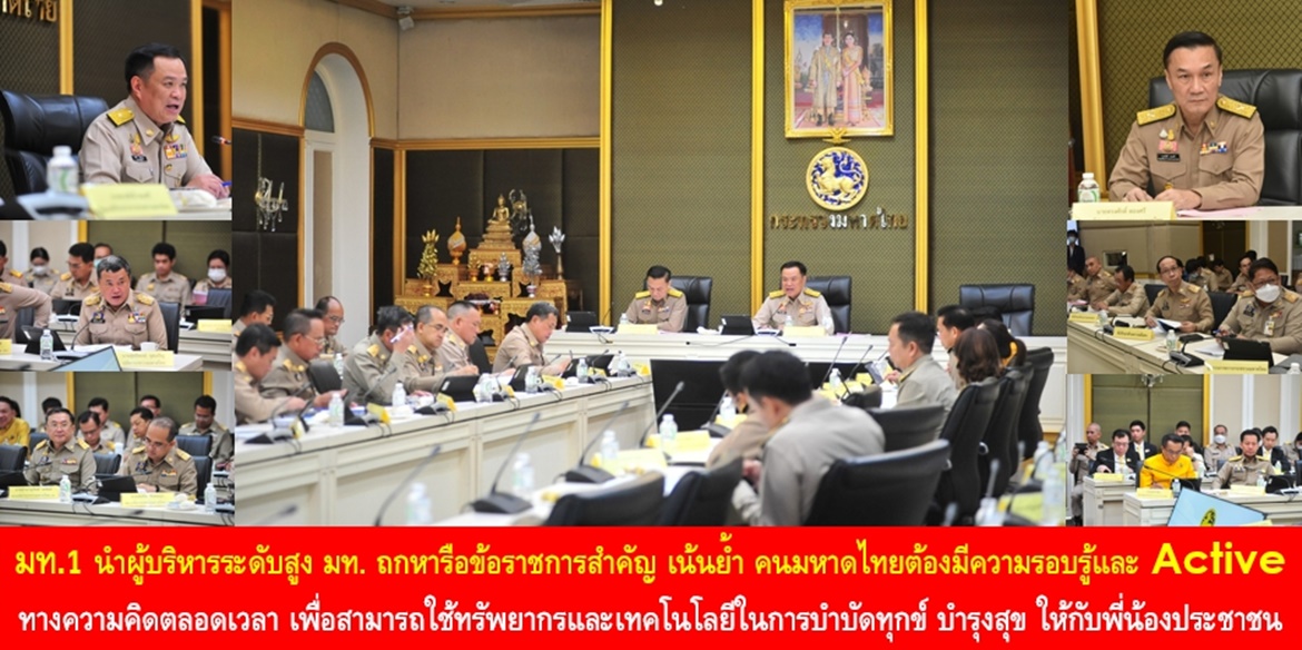 “ขอให้ผู้บริหารทุกท่านได้ดำเนินการอย่างเข้มข้นต่อเนื่อง ขับเคลื่อนงานเพื่อบำบัดทุกข์ บำรุงสุขพี่น้องประชาชนไปพร้อมกัน ซึ่งแม้ว่าในช่วงเวลาเกือบหนึ่งเดือนที่ผ่านมา มีเหตุการณ์เกิดขึ้นมากมาย ไม่ว่าจะเป็นอาชญากรรมที่เกี่ยวข้องกับผู้มีอิทธิพล สถานการณ์อุทกภัยในหลายพื้นที่ รวมถึงสงครามของต่างประเทศที่สร้างความรุนแรงในประเทศอิสราเอล ก็ทำให้แรงงานชาวไทยต้องกลายเป็นเหยื่อไปด้วย ซึ่งภารกิจที่ต้องดูแลทุกข์สุขของพี่น้องประชาชน ทำให้เราต้องติดตามและมีข้อมูลพื้นฐานในทุกเรื่อง แม้ในเรื่องที่ดูเหมือนไม่เกี่ยวข้องกับเราโดยตรง และขอให้นำแต่ละเหตุการณ์มาวิเคราะห์ปัญหาและความเชื่อมโยง เพื่อทุกท่านจะได้มุ่งมั่นทำหน้าที่ในฐานะกลไกกระทรวงมหาดไทยว่าจะสามารถมีบทบาทอย่างไรได้บ้าง ทั้งทางตรงและทางอ้อม ไม่ว่าจะเป็นมาตรการป้องกันเหตุ การสร้างความเข้าใจกับประชาชน หรือการบรรเทาทุกข์ที่ต้องทำอย่างเต็มที่ เช่น กรณีกราดยิงที่เกิดขึ้น นอกเหนือจากมาตรการทางกฎหมายเกี่ยวกับการควบคุมอาวุธแล้ว เราควรต้องบูรณาการกับหน่วยงานที่เกี่ยวข้องเพื่อสร้างความเข้าใจกับประชาชนเกี่ยวกับด้านสุขภาพจิต และการสังเกตพฤติกรรมผิดปกติต่าง ๆ ของคนในชุมชน ก็จะเป็นการช่วยป้องกันปัญหาในอนาคตได้อีกทางหนึ่ง พร้อมเน้นย้ำว่าผู้บริหารและบุคลากรของกระทรวงมหาดไทย ทั้งในส่วนกลาง ส่วนภูมิภาค จะต้องมีความรอบรู้และ Active ทางความคิดตลอดเวลา เพื่อให้สามารถใช้ทรัพยากรและเทคโนโลยีที่มีในการบำบัดทุกข์ บำรุงสุข ให้กับพี่น้องประชาชน” นายอนุทินฯ กล่าวเน้นย้ำ