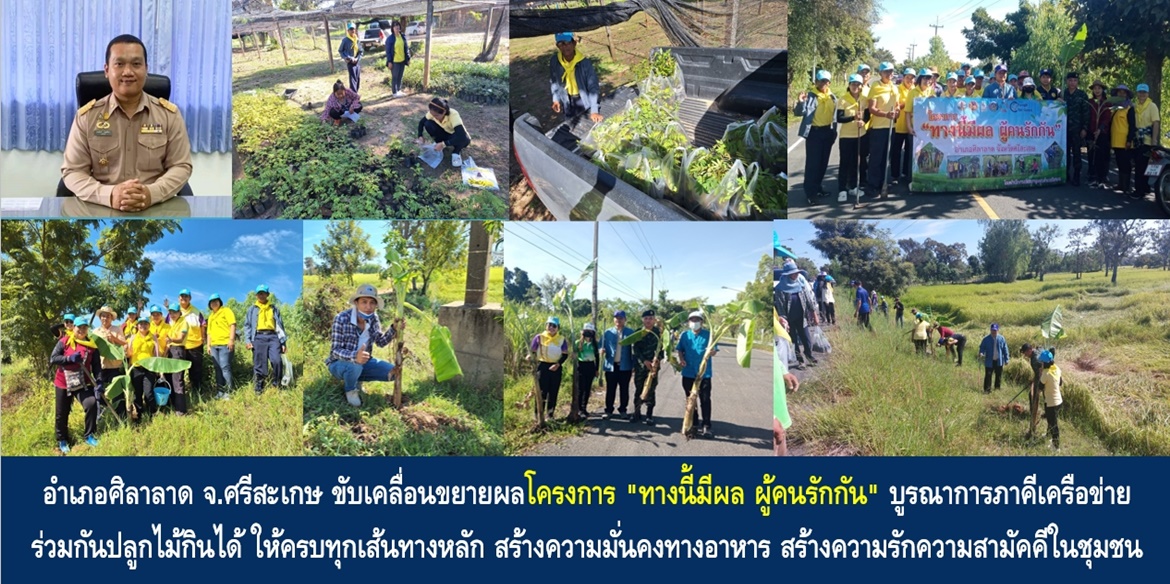 วันนี้ (4 พ.ย.66) นายนพนันท์ บุญคล้าย นายอำเภอศิลาลาด จังหวัดศรีสะเกษ เปิดเผยว่า อำเภอศิลาลาด มีความมุ่งมั่นที่จะขับเคลื่อน นโยบายของกระทรวงมหาดไทย ด้วยการน้อมนำแนวพระราชดำริ ของสมเด็จพระกนิษฐาธิราชเจ้า กรมสมเด็จพระเทพรัตนราชสุดาฯ สยามบรมราชกุมารี ในการเสริมสร้างความมั่นคงด้านอาหาร ส่งเสริมการปฏิบัติตามหลักปรัชญาของเศรษฐกิจพอเพียง ตามโครงการ “บ้านนี้มีรัก ปลูกผักกินเอง” และ โครงการ “ทางนี้มีผล ผู้คนรักกัน” โดยบูรณาการทุกภาคีเครือข่าย ร่วมแรงร่วมใจดำเนินการมาอย่างต่อเนื่อง