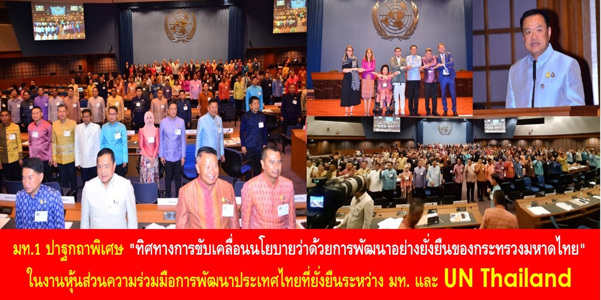 วันนี้ (9 พ.ย. 66) เวลา 15.30 น. ที่ ESCAP Hall ศูนย์ประชุมสหประชาชาติประจำประเทศไทย กรุงเทพมหานคร นายอนุทิน ชาญวีรกูล รองนายกรัฐมนตรีและรัฐมนตรีว่าการกระทรวงมหาดไทย ปาฐกถาพิเศษ หัวข้อ “ทิศทางการขับเคลื่อนนโยบายว่าด้วยการพัฒนาอย่างยั่งยืนของกระทรวงมหาดไทย” ในงานหุ้นส่วนความร่วมมือการพัฒนาประเทศไทยที่ยั่งยืนระหว่างกระทรวงมหาดไทยและองค์การสหประชาชาติ โดยมี นายสุทธิพงษ์ จุลเจริญ ปลัดกระทรวงมหาดไทย ดร.วันดี กุญชรยาคง จุลเจริญ นายกสมาคมแม่บ้านมหาดไทย คุณกีต้า ซับบระวาล (Mrs.Gita Sabharwal) ผู้ประสานงานองค์การสหประชาชาติประจำประเทศไทย นายเรโนล เมแยร์ (Mr.Renaud Meyer) ผู้แทนโครงการพัฒนาแห่งสหประชาชาติประจำประเทศไทย (UNDP) ดร.ออดรี อานนท์ โรเชเลมันยา เลขานุการเอก หัวหน้าทีมฝ่ายความร่วมมือสำนักงานคณะผู้แทนสหภาพยุโรปประจำประเทศไทย ผู้แทนหน่วยงานหลักสหประชาชาติ 21 หน่วยงานในประเทศไทย ผู้บริหารระดับสูงของกระทรวงมหาดไทย หัวหน้าส่วนราชการ หัวหน้าหน่วยงานรัฐวิสาหกิจในสังกัดกระทรวงมหาดไทย ผู้ว่าราชการจังหวัด ผู้บริหารสำนักงานปลัดกระทรวงมหาดไทย คณะทำงานโครงการผ้าไทยใส่ให้สนุกในพระดำริ ฯ และภาคีเครือข่ายของกระทรวงมหาดไทย ร่วมรับฟัง