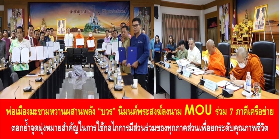 วันนี้ (4 ม.ค. 67) นายกฤษณ์ คงเมือง ผู้ว่าราชการจังหวัดเพชรบูรณ์ เปิดเผยว่า จังหวัดเพชรบูรณ์ได้จัดพิธีลงนามบันทึกข้อตกลงความร่วมมือบทบาทในการเกื้อหนุนระหว่างวัดและชุมชนให้มีความสุขอย่างยั่งยืน เพื่อตอบสนองการบรรลุเป้าหมายการพัฒนาที่ยั่งยืน (Sustainable Development Goals: SDGs ) โดยได้รับเมตตาจากพระราชพัชรธรรมเมธี เจ้าคณะจังหวัดเพชรบูรณ์ และพระโสภณวชิรากร เจ้าคณะจังหวัดเพชรบูรณ์ (ธ) เป็นตัวแทนภาคศาสนา ร่วมลงนาม พร้อมด้วยผู้แทนภาคีเครือข่าย คือ ภาครัฐ ภาควิชาการ ภาคเอกชน ภาคประชาสังคม ภาคประชาชน และภาคสื่อมวลชน ร่วมลงนาม ณ ห้องเมืองราด ชั้น 5 อาคาร 2 ศาลากลางจังหวัดเพชรบูรณ์