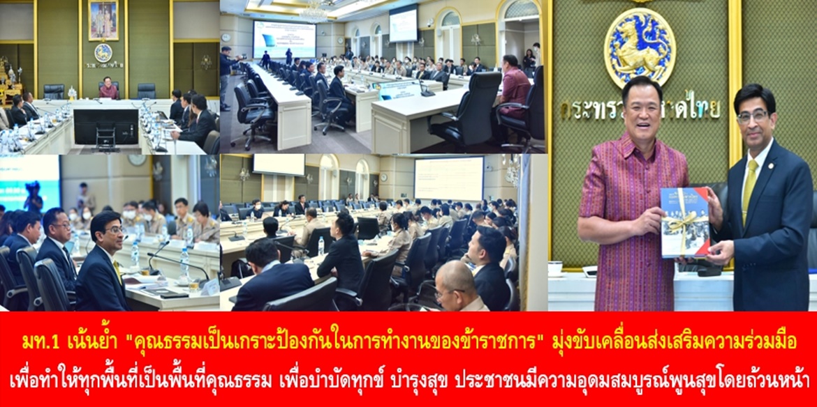 “การเชื่อมโยงการทำงานการขับเคลื่อนเชิงนโยบายด้านคุณธรรมนำสู่การปฏิบัติ เป็นสิ่งที่เราตระหนักและเล็งเห็นความสำคัญในระบบคุณธรรมในการบริหารราชการ ซึ่งตนได้มอบนโยบาย 4 กระทรวงภายใต้การกำกับ คือ กระทรวงมหาดไทย กระทรวงแรงงาน กระทรวงศึกษาธิการ และกระทรวงการอุดมศึกษา วิทยาศาสตร์ วิจัยและนวัตกรรม ซึ่งได้มอบนโยบายกับกระทรวงเหล่านี้ว่า ไม่มีอะไรสำคัญไปกว่าระบบคุณธรรม และคุณธรรมจะสามารถตอบโจทย์การทำงานทุกอย่างได้ เพราะถ้าหากหน่วยงานราชการที่มีผู้ใต้บังคับบัญชาจำนวนมากและมีการใช้อำนาจหน้าที่ตามกฎหมาย มีการทำงานแบบต่างตอบแทน แบบพรรคพวก หรือที่เรียกว่า “ระบบอุปถัมภ์” ก็จะส่งผลกระทบอย่างร้ายแรงต่อการขับเคลื่อนหน่วยงาน ส่งผลกระทบต่อพี่น้องประชาชนและประเทศชาติ ขอย้ำว่า “คุณธรรมเป็นเกราะป้องกันในการทำงานของชาวมหาดไทย” และเราจะส่งเสริมในเรื่องคุณธรรมด้วยความมุ่งมั่น เพื่อทำให้ข้าราชการและกลไกกระทรวงมหาดไทยในระดับพื้นที่ได้เป็นผู้มีคุณธรรม ทำให้ทุกพื้นที่เป็นพื้นที่คุณธรรม สอดคล้องปณิธาน บำบัดทุกข์ บำรุงสุข และทำให้ประชาชนมีความอุดมสมบูรณ์พูนสุขโดยถ้วนหน้า” นายอนุทินฯ กล่าวเพิ่มเติม