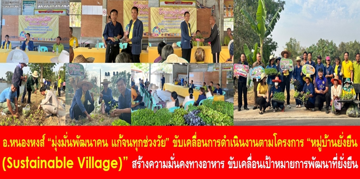 วันนี้ (13 ก.พ. 67) นายถาวร บุญศรี นายอำเภอหนองหงส์ จังหวัดบุรีรัมย์ เปิดเผยว่า อำเภอหนองหงส์ “มุ่งมั่นพัฒนาคน แก้จนทุกช่วงวัย” เพื่อขับเคลื่อนการดำเนินงานตามโครงการ “หมู่บ้านยั่งยืน (Sustainable Village)” เฉลิมพระเกียรติพระบาทสมเด็จพระเจ้าอยู่หัว เนื่องในโอกาสมหามงคลทรงเจริญพระชนมพรรษาครบ 6 รอบ 28 กรกฎาคม 2567 โดยมีผู้กำกับการสถานีตำรวจภูธรหนองหงส์ พัฒนาการอำเภอ เกษตรอำเภอ ปศุสัตว์อำเภอ นายก อบต.เมืองฝ้าย คณะผู้บริหาร อบต.เมืองฝ้าย กำนันตำบลเมืองฝ้าย ผู้นำหมู่บ้านในพื้นที่ตำบลเมืองฝ้าย ปลัดอำเภอ พัฒนากร ผู้นำ อช. เจ้าหน้าที่ ภาคีเครือข่าย และประชาชน ร่วมขับเคลื่อนโครงการ ซึ่งจะนำมาสู่การดำเนินการพัฒนาคุณภาพชีวิตที่ดีของประชาชนให้มีความเป็นอยู่ที่ดีขึ้น ลดความเหลื่อมล้ำทางเศรษฐกิจและสังคม อีกทั้งยังขับเคลื่อนเป้าหมายการพัฒนาที่ยั่งยืน (Sustainable Development Goals: SDGs) ด้วยการน้อมนำหลักปรัชญาเศรษฐกิจพอเพียงมาใช้ภายใต้เป้าหมายการสร้างความยั่งยืนให้ครอบคลุมทุกมิติทั้งด้านสังคม เศรษฐกิจ สิ่งแวดล้อม เพื่อสร้างความมั่นคงในชีวิต ความมั่นคงด้านอาหาร ความมั่นคงด้านเครื่องนุ่งห่ม การถ่ายทอดภูมิปัญญาสู่เด็กและเยาวชน ตลอดจนการรักษาสิ่งแวดล้อมและขนบธรรมเนียมประเพณีไทย เพื่อให้ประชาชนในหมู่บ้าน/ชุมชนได้พัฒนาไปสู่การมีคุณภาพชีวิตที่ดีอย่างยั่งยืน