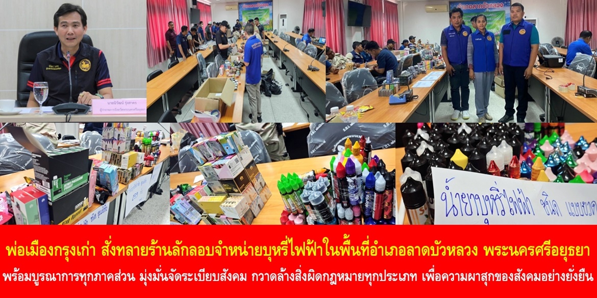 นายนิวัฒน์ รุ่งสาคร ผู้ว่าราชการจังหวัดพระนครศรีอยุธยา กล่าวว่า สืบเนื่องจากศูนย์ดำรงธรรมจังหวัดพระนครศรีอยุธยาได้รับเรื่องร้องจากประชาชนว่า มีการลักลอบจำหน่ายบุหรี่ไฟฟ้าและน้ำยาบุหรี่ไฟฟ้าให้กับเด็ก เยาวชน และประชาชนในพื้นที่ ตนจึงได้สั่งการให้ นายศุภกร อนันตรักษ์ ป้องกันจังหวัดพระนครศรีอยุธยา นายกิตติพงษ์ มณีโชติ ปลัดอำเภอหัวหน้ากลุ่มงานบริหารงานปกครองอำเภอลาดบัวหลวง นำกำลังชุดปฏิบัติการพิเศษฝ่ายปกครอง ชุดเฉพาะกิจกองบังคับการกองอาสารักษาดินแดนจังหวัดพระนครศรีอยุธยา บูรณาการกำลังร่วมกับชุดเฉพาะกิจฝ่ายปกครองอำเภอลาดบัวหลวง ดำเนินการเข้าตรวจสอบร้านลักลอบจำหน่ายบุหรี่ไฟฟ้าในเขตอำเภอลาดบัวหลวง จำนวน 3 ร้าน คือ 1) Pink Panther 2) นินจาเต่า และ 3) ร้านค้า 20 บาท