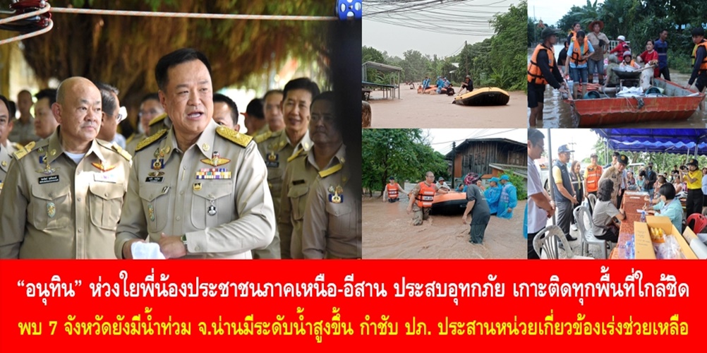 นายอนุทิน มีความห่วงใยความปลอดภัยและความเป็นอยู่ของพี่น้องประชาชนในพื้นที่ประสบภัย กำชับกับอธิบดี ปภ. ว่าแม้สถานการณ์ภาพร่วมจะคลี่คลาย แต่ด้วยขณะนี้ยังเป็นช่วงน้ำหลาก ขอให้ ปภ.ติดตามข้อมูลสภาพอากาศใกล้ชิด ประสานกับหน่วยงานเกี่ยวข้องเพื่อเตรียมการช่วยเหลือประชาชนให้พร้อม และไม่เพียงในพื้นที่เกิดภัยในปัจจุบันแต่ให้เตรียมพร้อมสำหรับพื้นที่อื่น ๆ ในระยะต่อไป เช่นเดียวกับทุกปีจะเกิดอุทกภัยเริ่มจากภาคเหนือ ตะวันออกเฉียงเหนือ ภาคกลาง และภาคใต้ในช่วงปลายปีต่อเนื่องถึงต้นปีถัดไป