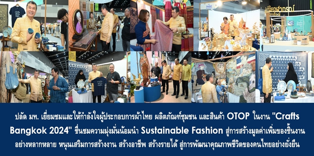 นายสุทธิพงษ์ กล่าวในช่วงท้ายว่า การร่วมเยี่ยมชมผลงานในงาน Crafts Bangkok 2024 ครั้งนี้ ได้พบเห็นความหลากหลายของชิ้นงานที่มีคุณค่า ทั้งในมิติเรื่องราว และด้านเศรษฐกิจฐานราก ซึ่งน่าเสียดายว่างานในครั้งนี้จัดวันนี้เป็นวันสุดท้าย แต่ก็ยังมีกิจกรรมที่พี่น้องผู้ประกอบการยังสามารถนำผลงานไปอวดโฉม ไปนำเสนอให้กับผู้บริโภคได้เลือกซื้อเลือกหาในงานมหกรรมสินค้า OTOP ทั้งงานระดับชาติ ที่ 1 ปีจะมี 3 กิจกรรมใหญ่ ได้แก่ 1) งาน OTOP Midyear 2) งาน OTOP ศิลปาชีพประทีปไทย และ 3) งาน OTOP City และงานระดับภูมิภาคที่กรมการพัฒนาชุมชน จะจัดสัญจรไปยังภาคต่าง ๆ รวมถึงงานประจำปีที่สำนักงานพัฒนาชุมชนจังหวัดแต่ละจังหวัด จะได้รับการหนุนเสริมโดยผู้ว่าราชการจังหวัด ให้มีการจัดจำหน่ายสินค้า OTOP ตลอดทั้งปี และการจำหน่ายผ่านช่องทางออนไลน์ และแพลตฟอร์มต่าง ๆ ตนจึงได้เชิญชวนให้ผู้ประกอบการจากทุกพื้นที่ได้สมัครเข้าเป็นสมาชิก OTOP เพื่อนำสินค้าเข้าสู่ตลาดสินค้า OTOP ซึ่งจะสามารถช่วยยกระดับสินค้าให้ได้การรับรอง เป็นการเพิ่มช่องทางการตลาด กระจายและขยายพื้นที่จำหน่ายอย่างกว้างขวาง และยังเป็นการเสริมสร้างการรับรู้ให้กับสังคมโดยทั่วไป ยังผลให้เกิดการสร้างโอกาส สร้างรายได้ให้กับผู้ประกอบการ หนุนเสริมช่องทางการตลาดผลิตภัณฑ์สู่นานาชาติ เกิดการหมุนเวียนรายได้มาสู่ประเทศไทย นำไปสู่การพัฒนาคุณภาพชีวิตของคนไทยอย่างยั่งยืน