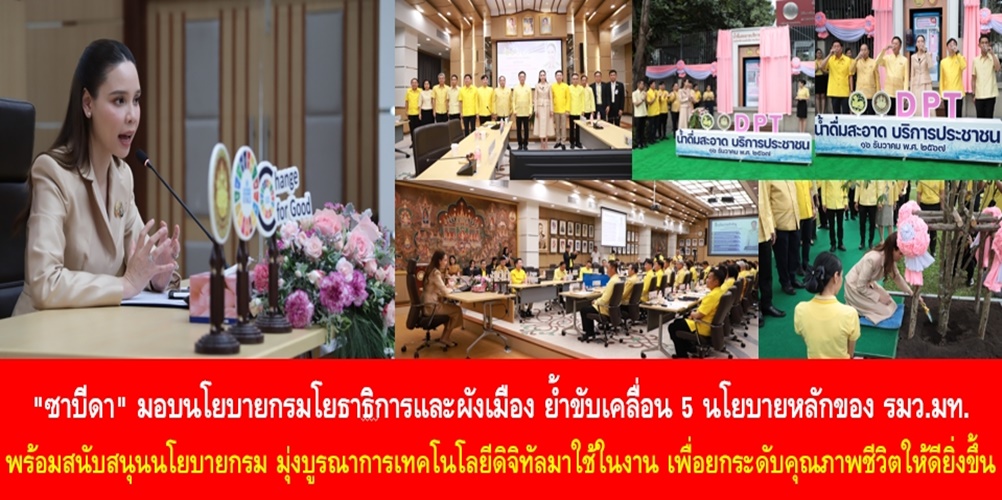 น.ส.ซาบีดา กล่าวว่า กรมโยธาธิการและผังเมือง เป็นหน่วยงานที่มีความสำคัญต่อการพัฒนาประเทศ ที่ต้องเร่งขับเคลื่อนภารกิจต่าง ๆ ตามนโยบายรัฐบาลและกระทรวงมหาดไทย โดยเฉพาะ 5 นโยบายหลัก ของนายอนุทิน ชาญวีรกูล รองนายกรัฐมนตรีและ รมว.มหาดไทย คือ 1) การจัดระเบียบสังคม ปราบปรามผู้มีอิทธิพล 2) การป้องกันและแก้ไขปัญหายาเสพติด 3) การสร้างอาชีพ เพิ่มรายได้ให้กับประชาชน 4) การส่งเสริมการท่องเที่ยวชุมชน สร้างความเข้มแข็งของเศรษฐกิจฐานราก และ 5) น้ำดื่มสะอาดบริการประชาชน เพื่อนำไปสู่เป้าหมายสำคัญของกระทรวงมหาดไทยในการบำบัดทุกข์ บำรุงสุข ช่วยยกระดับคุณภาพชีวิตของประชาชนให้ดีขึ้น ใน 3 ด้าน ได้แก่ ด้านความมั่นคงปลอดภัย เศรษฐกิจ และความสะดวกสบายในการใช้ชีวิตและการรับบริการจากภาครัฐ