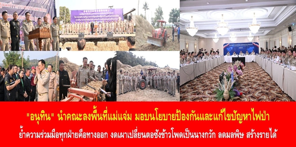“ถึงอย่างไรเราจะไม่ทอดทิ้งกัน ทุกจังหวัดอยู่ในความรับผิดชอบของกระทรวงมหาดไทยในฐานะกองบัญชาการป้องกันและบรรเทาสาธารณภัยแห่งชาติ นายอำเภอต้องบังคับใช้กฎหมายอย่างเข้มงวด และร่วมกันระดมสรรพกำลังทุกภาคส่วน ซึ่งสิ่งสำคัญที่สุดอีกกลไกหนึ่ง คือ กลไกกำนันผู้ใหญ่บ้าน องค์กรปกครองส่วนท้องถิ่น เพราะท่านคือผู้ที่มีความสัมพันธ์กับชาวบ้านโดยตรง ต้องประกาศห้ามเผาในที่โล่ง ห้ามเผาอย่างเด็ดขาด เราต้องช่วยกันหาวิธีการที่จะช่วยทำให้เกิดมลภาวะน้อยที่สุดเท่าที่จะทำได้ ด้วยการไถกลบฟางข้าวโพด “เปลี่ยนตอซังข้าวโพดเป็นนางกวัก” ให้เขามาเจอธรรมชาติแบบนี้ อากาศแบบนี้ เราต้องร่วมกันกวักเงิน กวักทอง กวักนักท่องเที่ยวให้มาช่วย ไม่ว่าจะเป็นนักท่องเที่ยวชาวไทยหรือชาวต่างประเทศก็ล้วนแล้วแต่เข้ามาทำประโยชน์ให้กับพวกเรา” นายอนุทิน กล่าว
