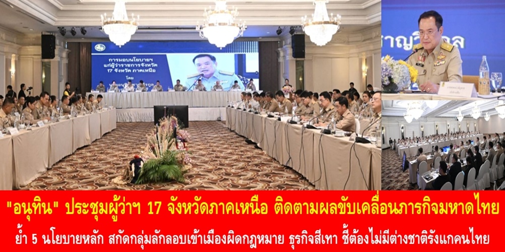 น.ส.ไตรศุลี ไตรสรณกุล เลขานุการ รมว.มหาดไทยและโฆษกกระทรวงมหาดไทย เปิดเผยว่า เมื่อวานนี้ (27 ม.ค. 68) เวลา 14.00 น. นายอนุทิน ชาญวีรกูล รองนายกรัฐมนตรีและรมว.มหาดไทย (มท.1) เป็นประธานการประชุมขับเคลื่อนภารกิจตามนโยบายรัฐบาลและกระทรวงมหาดไทยให้กับผู้ว่าราชการจังหวัด 17 จังหวัดภาคเหนือ โดย นายอรรษิษฐ์ สัมพันธรัตน์ ปลัดกระทรวงมหาดไทย พร้อมด้วยรองปลัดกระทรวงมหาดไทย และหัวหน้าส่วนราชการระดับกรมในสังกัดกระทรวงมหาดไทย ร่วมมอบแนวทางฯ ด้วย