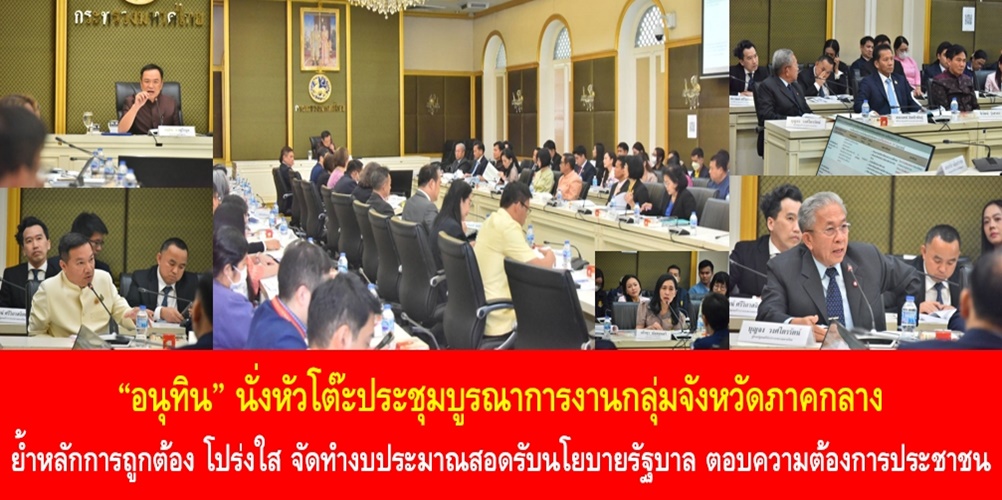 นายอนุทิน กล่าวว่า ขอให้ทุกกลุ่มจังหวัดภาคกลางได้บูรณาการการทำงานให้เต็มศักยภาพ โดยตั้งอยู่ในหลักความถูกต้องตามกฎหมาย โปร่งใส สอดคล้องกับนโยบายรัฐบาล แนวทางการจัดทำงบประมาณ ปฏิทินงบประมาณ และตอบสนองต่อความต้องการของพี่น้องประชาชนให้มากที่สุด ทุกพื้นที่ย่อมมีประเด็นปัญหาและความต้องการที่แตกต่างกันไป เพราะฉะนั้นในวันนี้เราจึงต้องมาร่วมกันกำหนดแนวทางการดำเนินงานให้เป็นบรรทัดฐานที่ถูกต้อง ซึ่งจะช่วยให้ทุกจังหวัดมีหลักปฏิบัติเพื่อบำบัดทุกข์ บำรุงสุข ให้พี่น้องประชาชนสมบูรณ์พูนสุขโดยถ้วนหน้า