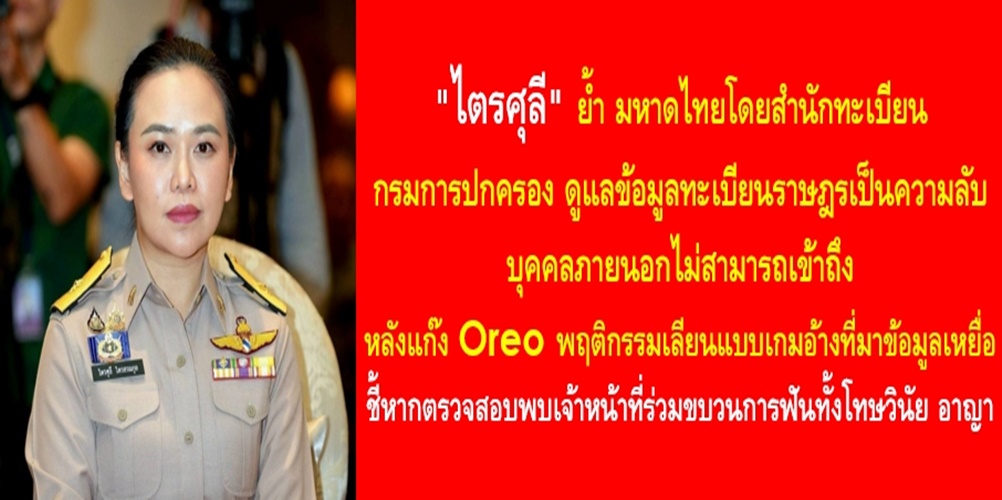 “กระทรวงมหาดไทย โดยกรมการปกครองทราบถึงข้อกังวลของประชาชน โดยขอยืนยันว่าข้อมูลทะเบียนราษฎรถูกเก็บเป็นความลับและเก็บรักษาอยู่ในระบบปิด บุคคลภายนอกไม่สามารถเข้าถึงอย่างแน่นอน แต่หากผู้ที่ได้รับความเสียหายแจ้งเพื่อให้ทางกรมการปกครองตรวจสอบและพบว่าเป็นกรณีที่เจ้าหน้าที่ร่วมในขบวนการทำผิด มีเข้าถึงข้อมูลโดยไม่มีอำนาจหน้าที่ก็มีบทลงโทษทั้งโทษทางวินัย และโทษทางอาญาตามกฎหมายข้อมูลทะเบียนราษฎร และ กฎหมายคุ้มครองข้อมูลส่วนบุคคล” น.ส.ไตรศุลี กล่าว