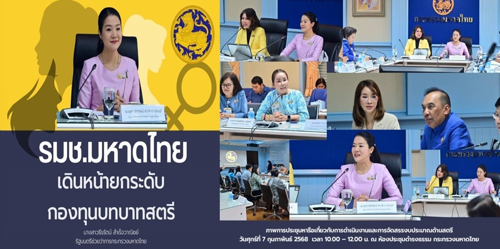 วันที่ 7 กุมภาพันธ์ 2568 นางสาวธีรรัตน์ สำเร็จวาณิชย์ รัฐมนตรีช่วยว่าการกระทรวงมหาดไทย เป็นประธานในที่ประชุมการดำเนินงานและแนวทางการจัดสรรงบประมาณของกองทุนพัฒนาบทบาทสตรีและการจัดสวัสดิการให้แก่สตรีที่ปฏิบัติงานเพื่อพัฒนาชุมชน ณ ห้องประชุมดำรงธรรม กระทรวงมหาดไทย