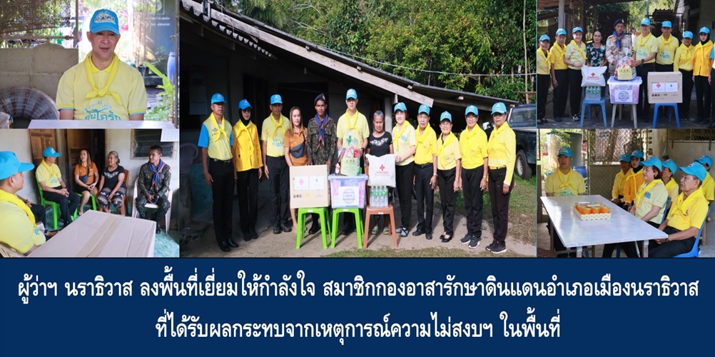 ผู้ว่าราชการจังหวัดนราธิวาส ได้พบปะพูดคุยพร้อมให้กำลังใจ แก่สมาชิกกองอาสารักษาดินแดนและครอบครัว เพื่อเป็นกำลังใจในการดำเนินชีวิต ต่อไป