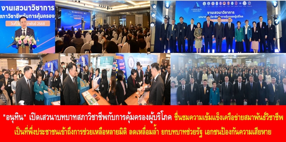 วันนี้ (14 ก.พ. 68) เวลา 10.30 น. นายอนุทิน ชาญวีรกูล รองนายกรัฐมนตรีและรมว.มหาดไทย เป็นประธานเปิดงานเสวนาวิชาการ “บทบาทสภาวิชาชีพกับการคุ้มครองผู้บริโภค” โดยมี ดร.วิเชียร ชุบไธสง นายกสภาทนายความ ในพระบรมราชูปถัมภ์ พร้อมด้วยนายกสภาวิชาชีพ นายกสมาคมสภาวิชาชีพแห่งประเทศไทย สมาชิกองค์กรวิชาชีพ และสื่อมวลชน ร่วมในงาน