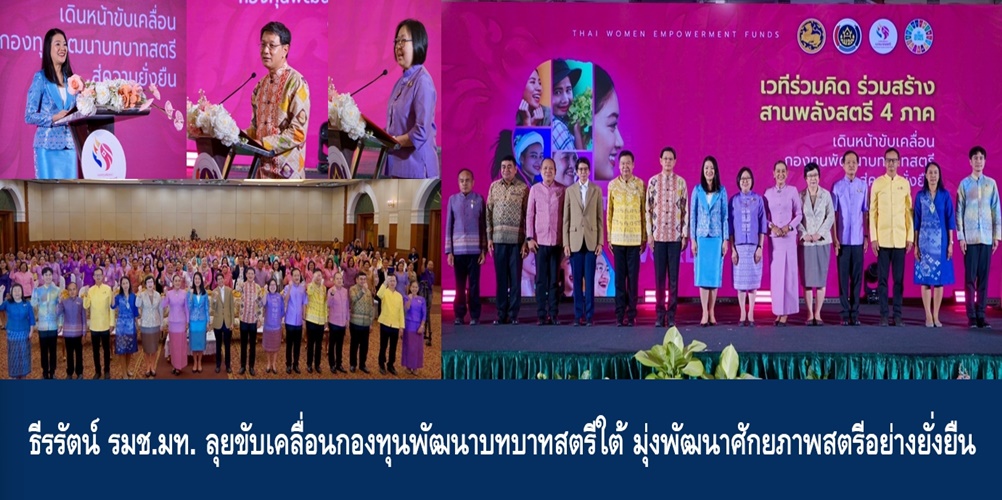 นางสาวธีรรัตน์ กล่าวว่า กองทุนพัฒนาบทบาทสตรีเกิดขึ้นตั้งแต่ ปี พ.ศ. 2555 จากความตั้งใจของท่านอดีตนายกยิ่งลักษณ์ ชินวัตร โดยต้องการให้สตรีได้รับการยอมรับ ได้มีโอกาสมายืนแถวหน้าของสังคม และได้เป็นส่วนนำของครอบครัว โดยปัจจุบันกองทุนพัฒนาบทบาทสตรีอยู่ในการกำกับดูแลของกรมการพัฒนาชุมชน กระทรวงมหาดไทย มีสมาชิกประเภทบุคคลธรรมดากว่า 17 ล้านคน และสมาชิกประเภทองค์กรกว่า 83,405 องค์กร ซึ่งถือเป็นพลังสำคัญในการขับเคลื่อนการพัฒนาคุณภาพชีวิตและเศรษฐกิจของชุมชนให้เติบโตอย่างยั่งยืน อีกทั้งยังเป็นความตั้งใจของรัฐบาลที่จะพัฒนาต่อยอดกองทุนพัฒนาบทบาทสตรีให้ทันสมัย ส่งเสริมสมาชิกสตรีให้สามารถเข้าถึงแหล่งเงินทุนดอกเบี้ยต่ำ มีเงินทุน สําหรับพัฒนาศักยภาพและส่งเสริมบทบาทขององค์กรสตรี พัฒนาส่งเสริมอาชีพ ร่วมกับ การเสริมสร้างวินัยทางการเงินแก่สมาชิกสตรี สร้างความมั่นคงทางรายได้แก่ครอบครัว ชุมชน และประเทศชาติ