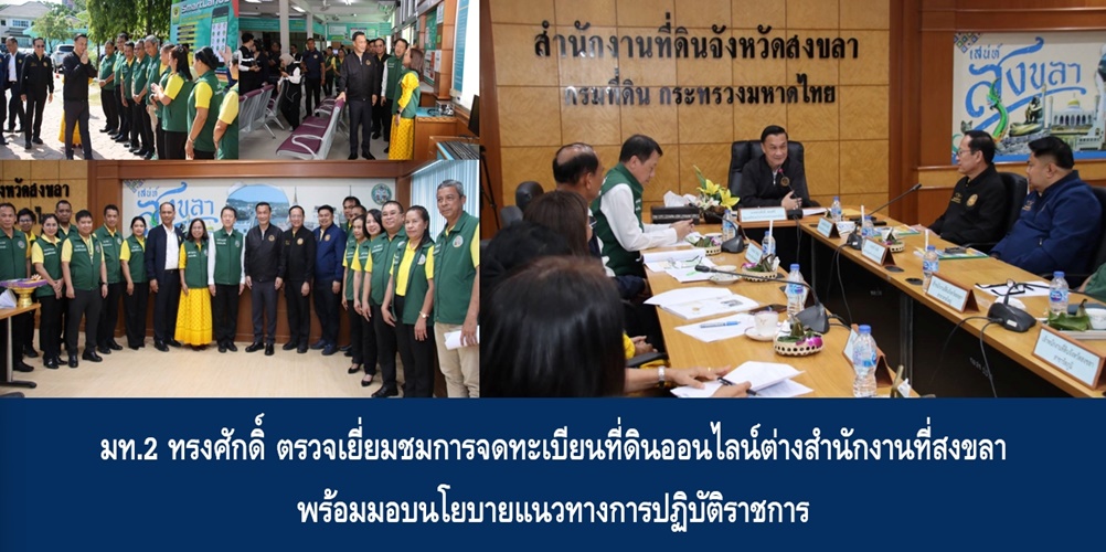 รมช.มท. ได้เยี่ยมชมการจดทะเบียนที่ดินออนไลน์ต่างสำนักงานที่สงขลา พร้อมกล่าวชื่นชมสำนักงานที่ดินจังหวัดสงขลา/สาขาทั้ง 11 สาขา ที่ได้ดำเนินการบริการประชาชน เป็นไปด้วยความเรียบร้อย และมีระบบเทคโนโลยีที่ทันสมัย ดีใจที่ช่วยประหยัดเวลาและค่าใช้จ่ายให้ประชาชนในการจดทะเบียนสิทธินิติกรรมจากสำนักงานที่ดินทั่วประเทศอีกด้วย