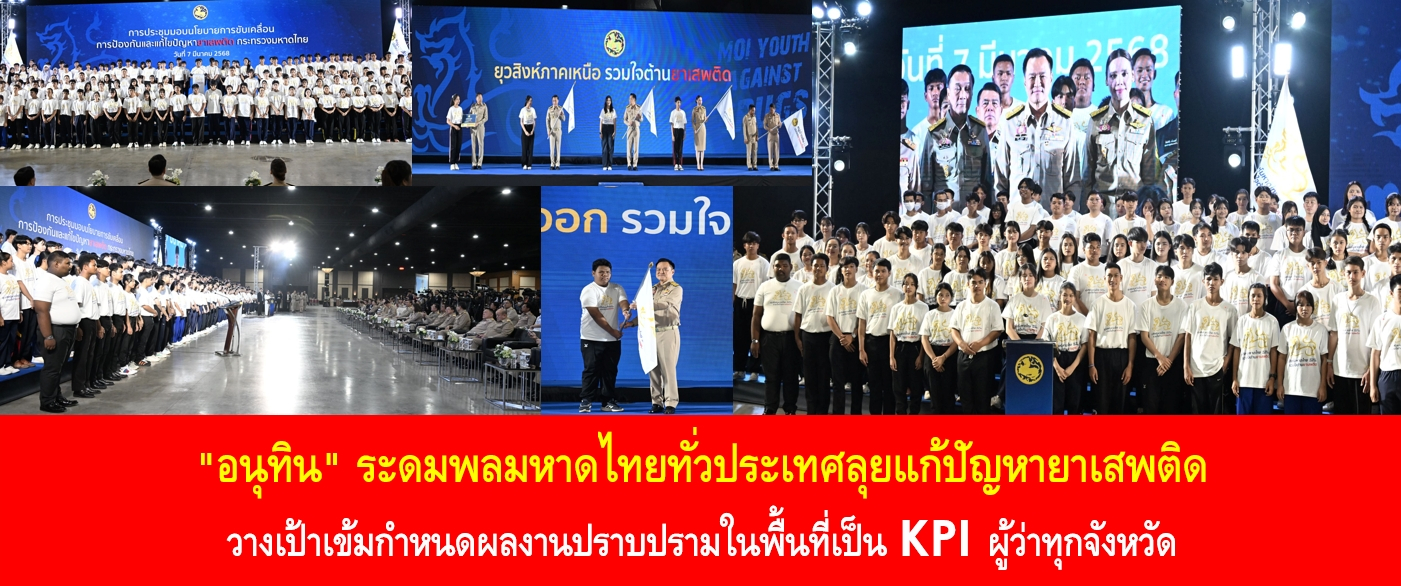 “เพื่อให้การแก้ไขปัญหายาเสพติดเป็นไปอย่างเข้มข้น กระทรวงมหาดไทยได้กำหนดให้การดำเนินงานด้านยาเสพติดเป็นหนึ่งใน KPI ของผู้ว่าราชการจังหวัด ในการขับเคลื่อน 4 แนวทางสำคัญ ได้แก่ การป้องกันเชิงรุก การปราบปรามจริงจังตัดวงจรเครือข่ายผู้ค้า การบำบัดฟื้นฟูอย่างมีประสิทธิภาพ และ การเปลี่ยนกลุ่มเสี่ยงให้เป็นพลัง ด้วยยุวสิงห์มหาดไทยร่วมใจต้านยาเสพติด” นายอนุทิน กล่าว