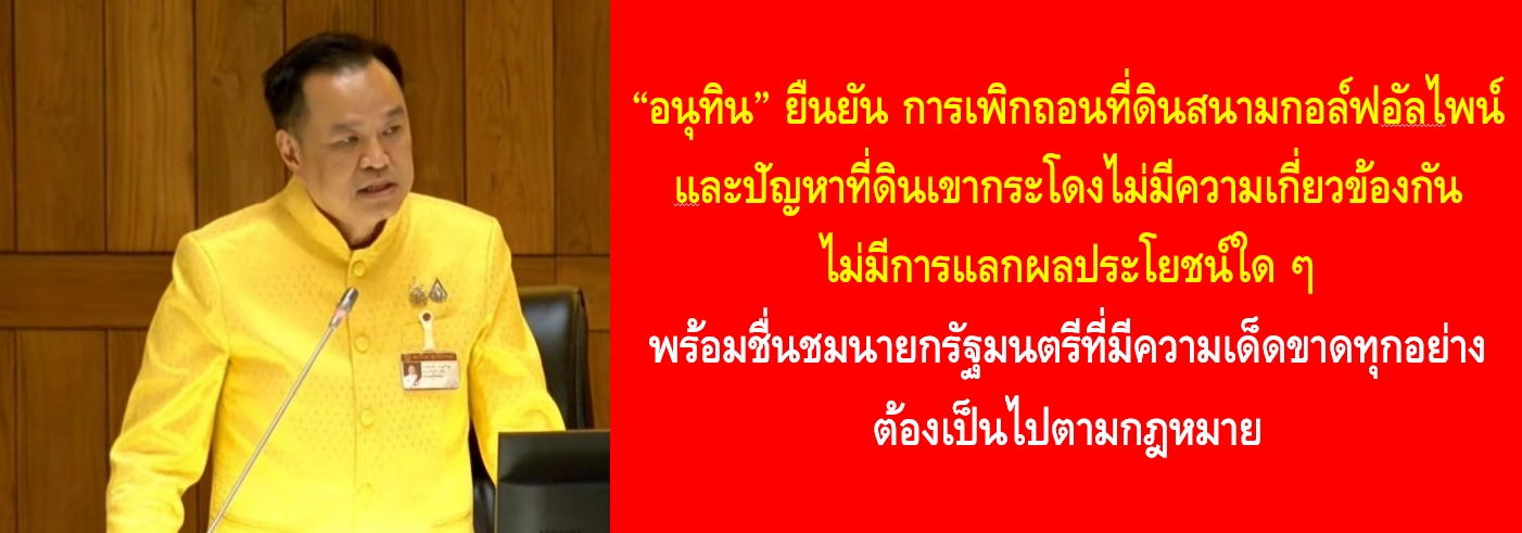 กรณีการเพิกถอนเอกสารสิทธิที่ดินที่เป็นที่ตั้งสนามกอล์ฟอัลไพน์เป็นปัญหาที่ยืดเยื้อมากว่า 20 ปี ผ่านมาหลายรัฐบาลแล้ว และได้มีคำสั่งศาล มีคำพิพากษาของศาล ซึ่งมีบุคคลหลายท่านต้องโทษจากคำพิพากษาของศาลไปแล้ว และประเด็นทั้งหมดในเรื่องการเพิกถอนเอกสารสิทธิได้มายุติในรัฐบาลชุดนี้ ด้วยนโยบายของ น.ส.แพทองธาร ชินวัตร นายกรัฐมนตรี ที่ให้ปฏิบัติตามกฎหมายด้วยความถูกต้องมาเป็นหลักในการดำเนินการอย่างเคร่งครัด และขณะนี้ได้มีการเพิกถอนเอกสารสิทธิที่ดินสนามกอล์ฟอัลไพน์ซึ่งลงนามโดยรองปลัดกระทรวงมหาดไทย หัวหน้ากลุ่มภารกิจด้านกิจการความมั่นคงภายใน ผู้ที่มีอำนาจโดยตรง ดังนั้น ต้องถือว่าขณะนี้ตัวนายกรัฐมนตรีและบุคคลในครอบครัวท่านเป็นหนึ่งในผู้เสียหายเช่นเดียวกับลูกบ้านอัลไพน์รายอื่นๆ ซึ่งท่านจะต้องไปใช้สิทธิในทางศาลเพื่อขอความเป็นธรรมให้แก่ตนเองและขอรับค่าตอบแทนจากการทำนิติกรรมที่เป็นการบกพร่องของกรมที่ดินในอดีต