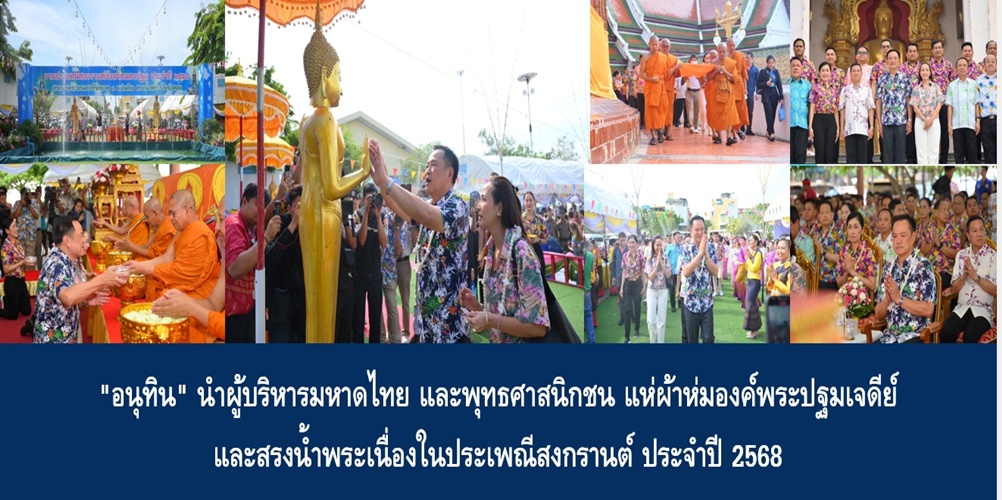 วันนี้ (16 เม.ย. 68) เวลา 15.09 น. นายอนุทิน ชาญวีรกูล รองนายกรัฐมนตรี และรัฐมนตรีว่าการกระทรวงมหาดไทย เป็นประธานพิธีแห่ผ้าห่มองค์พระปฐมเจดีย์ และสรงน้ำพระสงฆ์ เนื่องในงานประเพณีสงกรานต์ ประจำปี 2568 ณ บริเวณลานหน้าพระร่วงโรจนฤทธิ์ องค์พระปฐมเจดีย์ อ.เมืองนครปฐม จ.นครปฐม โดยมี น.ส.ธนนนท์ นิรามิษ ภริยารองนายกรัฐมนตรีและรมว.มหาดไทย ที่ปรึกษากิตติมศักดิ์สมาคมแม่บ้านมหาดไทย นายอรรษิษฐ์ สัมพันธรัตน์ ปลัดกระทรวงมหาดไทย คณะผู้บริหารระดับสูงของกระทรวงมหาดไทย น.ส.อโรชา นันทมนตรี ผู้ว่าราชการจังหวัดนครปฐม พร้อมหัวหน้าส่วนราชการ ข้าราชการ ผู้บริหารองค์กรปกครองส่วนท้องถิ่น และพุทธศาสนิกชน ร่วมงาน