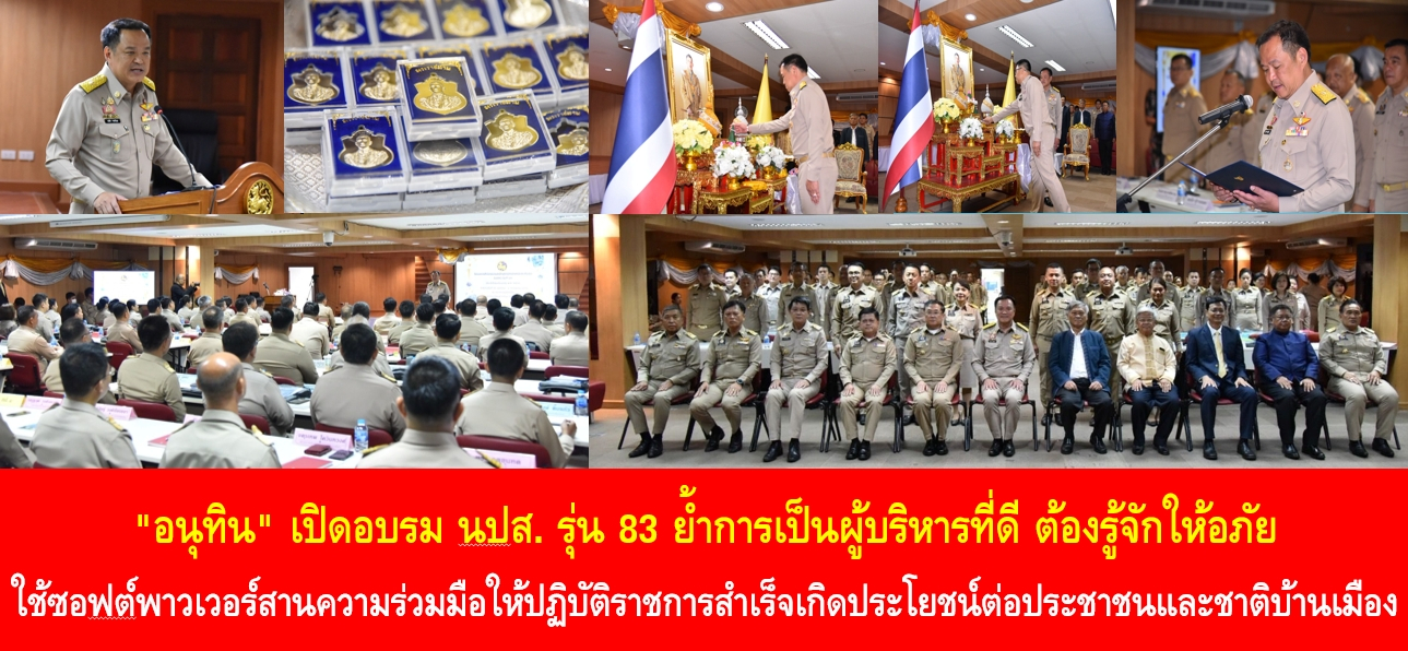 วันนี้ (21 เม.ย. 68) เวลา 09.00 น. นายอนุทิน ชาญวีรกูล รองนายกรัฐมนตรีและ รมว.มหาดไทย เป็นประธานเปิดการศึกษาอบรมหลักสูตรนักปกครองระดับสูง (นปส.) รุ่นที่ 83 พร้อมบรรยายพิเศษหัวข้อ “ประสบการณ์นักบริหาร” และเป็นประธานพิธีรับเหรียญที่ระลึกพระราชทานของพระบาทสมเด็จพระเจ้าอยู่หัว เพื่อมอบให้แก่ผู้เข้ารับการศึกษาอบรมฯ ณ ห้องประชุมอัษฎางค์ ชั้น 5 อาคารดำรงราชานุสรณ์ กระทรวงมหาดไทย