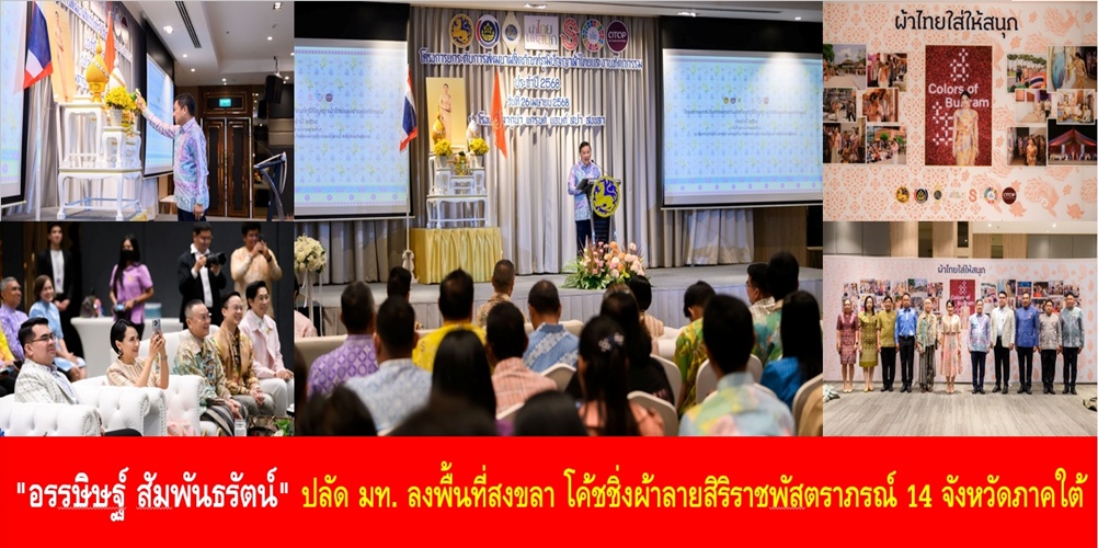 วันนี้ (26 เม.ย. 68) นายอรรษิษฐ์ สัมพันธรัตน์ ปลัดกระทรวงมหาดไทย เปิดอบรม Coaching ผ้าลายพระราชทาน “ลายสิริราชพัสตราภรณ์” และงานหัตถกรรม ประจำปี 2568 จุดดำเนินการที่ 3 ภาคใต้ ณ โรงแรมลากูน่า สงขลา อ.เมืองสงขลา จ.สงขลา โดยมี นายโชตินรินทร์ เกิดสม ผู้ว่าราชการจังหวัดสงขลา นายวรงค์ แสงเมือง รองอธิบดีกรมการพัฒนาชุมชน ผู้บริหารกรมการพัฒนาชุมชน ผู้บริหารจังหวัดสงขลา คณะทำงานโครงการผ้าไทยใส่ให้สนุก กลุ่มผู้ผลิต และผู้ประกอบการผ้าและงานหัตถกรรมในพื้นที่ภาคใต้ ร่วมกิจกรรมจำนวนมาก