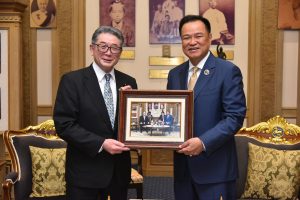 ด้าน นายโทกาชิ ฮิโรยูกิ กล่าวว่า รู้สึกเป็นเกียรติที่ได้พบปะกับทางท่านผู้บริหารกระทรวงมหาดไทยวันนี้ และขอแสดงความเสียใจต่อผู้เสียชีวิตจากเหตุการณ์แผ่นดินไหว รวมไปถึงขอส่งกำลังใจให้แก่ผู้ประสบภัยจากใจจริง ประเทศญี่ปุ่นมีความยินดีที่จะให้ความร่วมมือกับประเทศไทยอย่างเต็มที่ในทุกมิติ ทั้งในด้านการป้องกันและบรรเทาสาธารณภัย การส่งเสริมการปกครองท้องถิ่น ตลอดจนในด้านการท่องเที่ยว เพื่อกระชับความสัมพันธ์บ้านพี่เมืองน้องให้แน่นแฟ้นมากยิ่งขึ้น