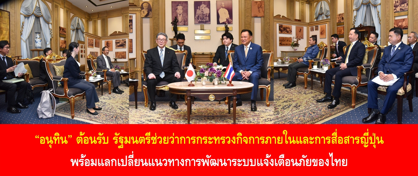 นายอนุทิน ได้ขอบคุณกระทรวงกิจการภายในและการสื่อสารญี่ปุ่น ที่ได้แลกเปลี่ยนแนวทางการพัฒนาระบบแจ้งเตือนภัย รวมไปถึงการป้องกันและบรรเทาสาธารณภัย ซึ่งทั้งหมดนี้จะเป็นแนวทางที่ดีให้กับกระทรวงมหาดไทยได้พัฒนาระบบการเฝ้าระวังภัยให้ครอบคลุมทุกพื้นที่ อันจะช่วยส่งต่อความปลอดภัยให้แก่พี่น้องประชาชน โดยจากนี้ทาง ปภ. และสถานทูตญี่ปุ่น ประจำประเทศไทย จะได้มีการประสานงานเพื่อส่งต่อข้อมูลที่เป็นประโยชน์ในการพัฒนาระบบเตือนภัย และแนวทางการเข้าช่วยเหลือประชาชนเมื่อมีภัยต่อไปด้วย