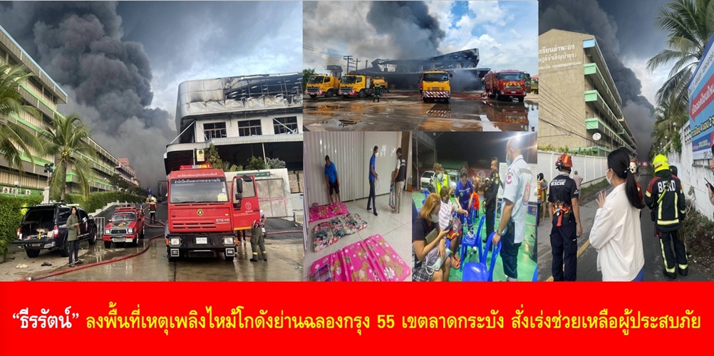วันที่ 12 พฤษภาคม 2568 เวลา 06.00 น. นางสาวธีรรัตน์ สำเร็จวาณิชย์ รัฐมนตรีช่วยว่าการกระทรวงมหาดไทย ลงพื้นที่ติดตามสถานการณ์เหตุเพลิงไหม้โกดังสินค้าในซอยฉลองกรุง 55 เขตลาดกระบัง กรุงเทพมหานคร พร้อมเยี่ยมศูนย์พักพิงชั่วคราวและให้กำลังใจประชาชนที่ได้รับผลกระทบ โดยเน้นย้ำให้เจ้าหน้าที่ทุกฝ่ายปฏิบัติงานด้วยความปลอดภัยสูงสุด โดยเฉพาะการอพยพประชาชนจากพื้นที่ที่ยังมีหมอกควันหนาแน่นในช่วงเช้า