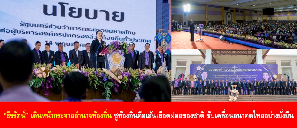 นางสาวธีรรัตน์ฯ กล่าวเพิ่มเติมว่า ประเทศไทยกำลังเผชิญกับความเปลี่ยนแปลงรอบด้าน ทั้งด้านเศรษฐกิจ สังคม สิ่งแวดล้อม และเทคโนโลยี ทำให้การพัฒนาท้องถิ่นกลายเป็นกลไกสำคัญในการขับเคลื่อนประเทศจากฐานราก โดยรัฐบาลภายใต้การนำของ นางสาวแพทองธาร ชินวัตร นายกรัฐมนตรี ได้มีนโยบายในแนวทางการกระจายอำนาจอย่างจริงจังและต่อเนื่อง ทั้งในด้านงบประมาณ อำนาจการตัดสินใจ และการพัฒนาศักยภาพบุคลากรท้องถิ่น
