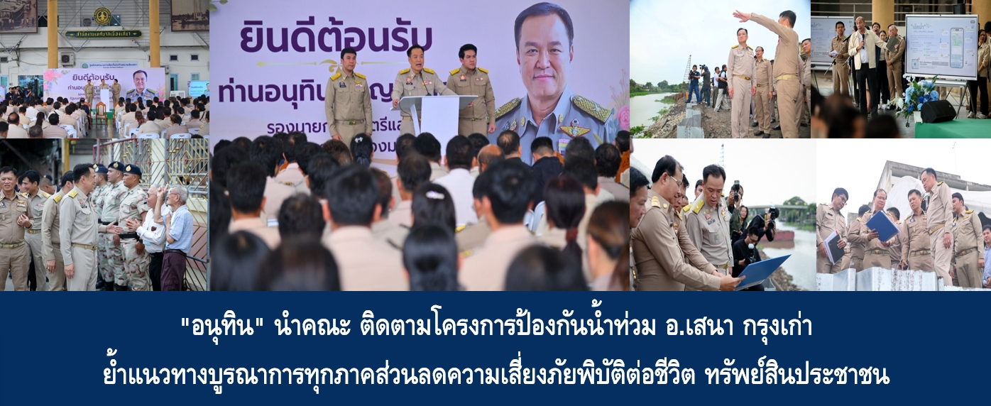 นายอนุทิน กล่าวว่า เตรียมความพร้อมป้องกันสาธารณภัยเป็นเรื่องสำคัญ โดยเฉพาะในพื้นที่ อ.เสนา ซึ่งเป็นพื้นที่ลุ่มต่ำที่ประสบปัญหาน้ำท่วมเป็นประจำทุกปี โดยขณะนี้กระทรวงมหาดไทยได้บูรณาการการทำงานร่วมกับกระทรวงการอุดมศึกษา วิทยาศาสตร์ วิจัยและนวัตกรรม (อว.) และ GISTDA เพื่อเตรียมความพร้อมดังกล่าว