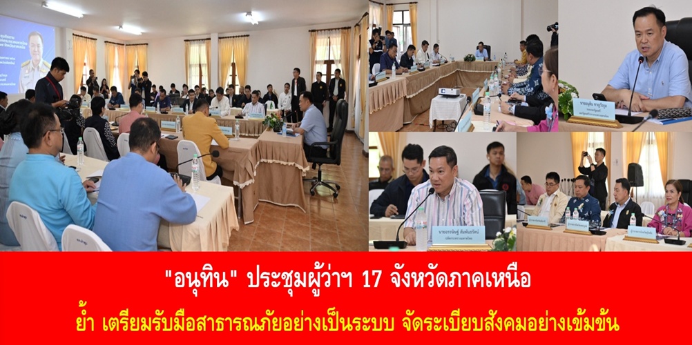 เมื่อวานนี้ (23 พ.ค. 68) เวลา 11.30 น. นายอนุทิน ชาญวีรกูล รองนายกรัฐมนตรีและรมว.มหาดไทย เป็นประธานประชุมขับเคลื่อนนโยบายสำคัญของกระทรวงมหาดไทยร่วมกับผู้ว่าราชการจังหวัด 17 จังหวัดภาคเหนือ โดยมี นายอรรษิษฐ์ สัมพันธรัตน์ ปลัดกระทรวงมหาดไทย นายสยาม ศิริมงคล อธิบดีกรมการพัฒนาชุมชน ผู้ว่าราชการจังหวัด 17จังหวัดภาคเหนือ ผู้บริหารองค์กรปกครองส่วนท้องถิ่น และเจ้าหน้าที่ที่เกี่ยวข้อง ร่วมประชุม ณ ห้องประชุมสถาบันผ้าทอมือหริภุญชัย อบจ.ลำพูน ต.ต้นธง อ.เมืองลำพูน จ.ลำพูน