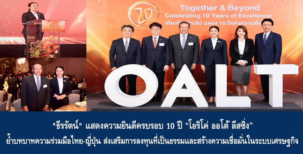 “ขอแสดงความยินดีกับบริษัท โอริโค่ฯ ในโอกาสครบรอบ 10 ปีแห่งความสำเร็จอันมั่นคง และเชื่อมั่นเป็นอย่างยิ่งว่าบริษัทฯ จะยังคงเป็นพันธมิตรที่แข็งแกร่งของประเทศไทยในการขับเคลื่อนเศรษฐกิจ ส่งเสริมระบบการเงินที่เป็นธรรม และร่วมสร้างความยั่งยืนให้กับสังคมไทยต่อไป” นางสาวธีรรัตน์ กล่าวในช่วงท้าย