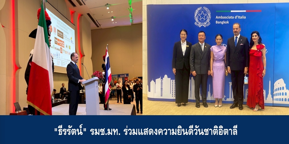 เมื่อวันที่ 2 มิถุนายน 2568 เวลา 18.30 น. นางสาวธีรรัตน์ สำเร็จวาณิชย์ รัฐมนตรีช่วยว่าการกระทรวงมหาดไทย พร้อมด้วย นางสาวกานต์กนิษฐ์ แห้วสันตติ ผู้ช่วยเลขานุการรัฐมนตรีว่าการกระทรวงมหาดไทย เข้าร่วมงานเฉลิมฉลองวันชาติของสาธารณรัฐอิตาลี (Republic Day: Italy’s National Holiday) ณ ศูนย์การประชุมแห่งชาติสิริกิติ์ ตามคำเชิญของนายเปาโล ดีโอนีซี (H.E. Mr. Paolo Dionisi) เอกอัครราชทูตสาธารณรัฐอิตาลีประจำประเทศไทย