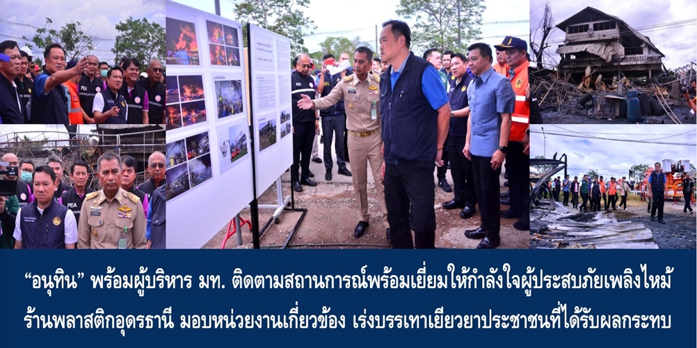 “ในส่วนของกระทรวงมหาดไทย ทางผู้ว่าราชการจังหวัดอุดรธานี ได้ประสานงานกับนายกเทศมนตรีนครอุดรธานี รวมถึงสำนักงานป้องกันและบรรเทาสาธารณภัยจังหวัดอุดรธานี ได้เข้าควบคุมสถานการณ์เพลิงไหม้จนสงบลงเป็นที่เรียบร้อย และได้มีการประกาศให้พื้นที่ดังกล่าวเป็นเขตภัยพิบัติ โดยห้ามมิให้บุคคลภายนอกเข้าไปในพื้นที่เกิดเหตุโดยเด็ดขาด หากฝ่าฝืนจะมีความผิดตามกฎหมาย เนื่องจากโครงสร้างของอาคารได้รับผลกระทบอย่างรุนแรงจากเพลิงไหม้ อาจเกิดการทรุดตัวหรือถล่มลงมาได้ จึงขอให้ประชาชนหลีกเลี่ยงการเข้าใกล้พื้นที่ดังกล่าวโดยเด็ดขาด เพื่อความปลอดภัยในชีวิตและทรัพย์สิน“