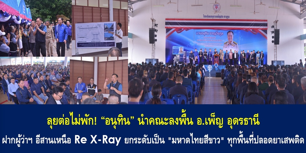 “ขอฝากผู้ว่าราชการจังหวัดอุดรธานี รวมถึงทุกจังหวัดที่มาในวันนี้ได้เน้นย้ำเรื่องยาเสพติด ซึ่งเป็นปัจจัยสำคัญที่บั่นทอนสังคม เราต้องร่วมมือกันขจัดให้หมดสิ้นผ่านกลไกทุกระดับ ตั้งแต่อำเภอ ตำบล หมู่บ้าน ผนึกกำลังทุกภาคส่วนร่วมกัน Re-X-ray ค้นหายาเสพติดในพื้นที่ เป็นมหาดไทยสีขาว อย่างแท้จริง เพื่อให้เป็นไปตามนโยบายของรัฐบาล ที่มุ่งปราบปรามยาเสพติดอย่างเด็ดขาด โดยถือเป็นภารกิจสำคัญที่ผู้ว่าราชการจังหวัดต้องดำเนินการให้เกิดผลเป็นรูปธรรม” นายอนุทิน กล่าว