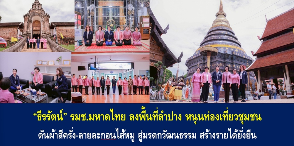 อีกทั้ง นางสาวธีรรัตน์ได้ชื่นชมการอนุรักษ์และต่อยอดภูมิปัญญาท้องถิ่น อาทิ “ผ้าสีครั่ง” ผ้าย้อมจากครั่งธรรมชาติที่ให้สีแดงหม่นอันเป็นเอกลักษณ์ และ “ลายละกอนไส้หมู” ลวดลายโบราณเฉพาะถิ่นลำปาง ที่สะท้อนรากวัฒนธรรมอันทรงคุณค่า พร้อมส่งเสริมให้นำมาต่อยอดเป็นผลิตภัณฑ์สร้างสรรค์ เพิ่มมูลค่าสินค้าชุมชน และดึงดูดนักท่องเที่ยวเชิงวัฒนธรรม