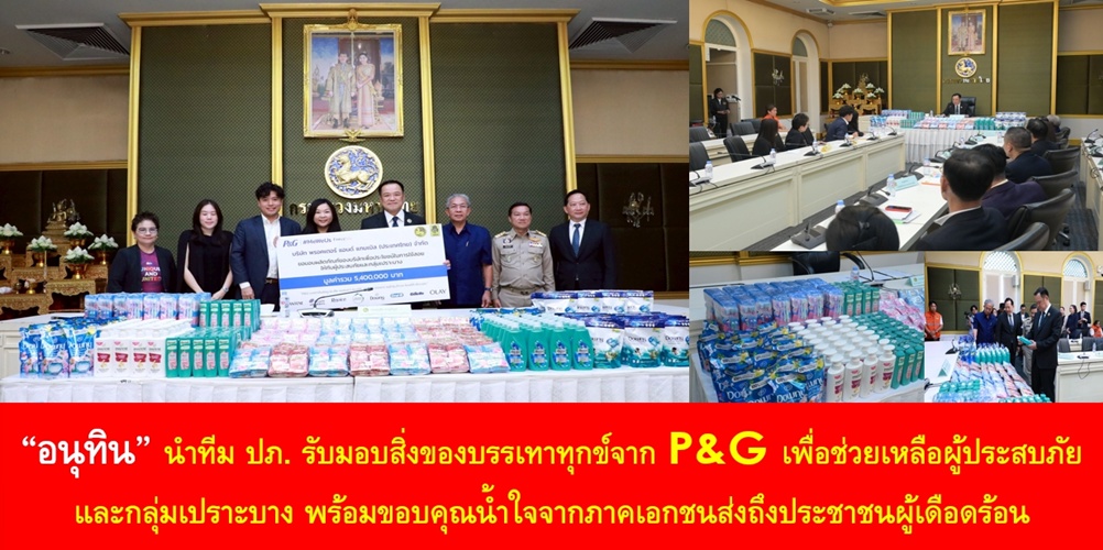 “กระทรวงมหาดไทยมีความซาบซึ้งน้ำใจที่ P&G มีให้แก่คนไทยมาโดยตลอด ซึ่งตั้งแต่สถานการณ์โรคโควิด-19 ก็ได้บริจาคเงินและสิ่งของให้รัฐบาลไทยเพื่อช่วยเหลือผู้ที่เจ็บป่วย นอกจากนี้ ที่ผ่านมามีสาธารณภัยเกิดขึ้นมากมายที่ส่งผลกระทบต่อประเทศไทย เช่น แผ่นดินไหว น้ำท่วม รวมถึงสถานการณ์สงครามบริเวณชายแดนประเทศไทย จึงขอชื่นชมและขอขอบคุณในน้ำใจที่ได้ช่วยกันบรรเทาความเดือดร้อนของประชาชนคนไทยร่วมกัน โดยกระทรวงมหาดไทยจะได้นำสิ่งของที่ได้รับให้เกิดประโยชน์สูงสุดตามความตั้งใจของ P&G ส่งต่อความห่วงใยถึงมือพี่น้องประชาชนผู้ประสบภัย โดยเฉพาะกลุ่มเปราะบาง รวมถึงมอบแก่เจ้าหน้าที่ในพื้นที่ เพื่อสนับสนุนการปฏิบัติงานช่วยเหลือประชาชนอย่างเต็มที่” นายอนุทิน กล่าว
