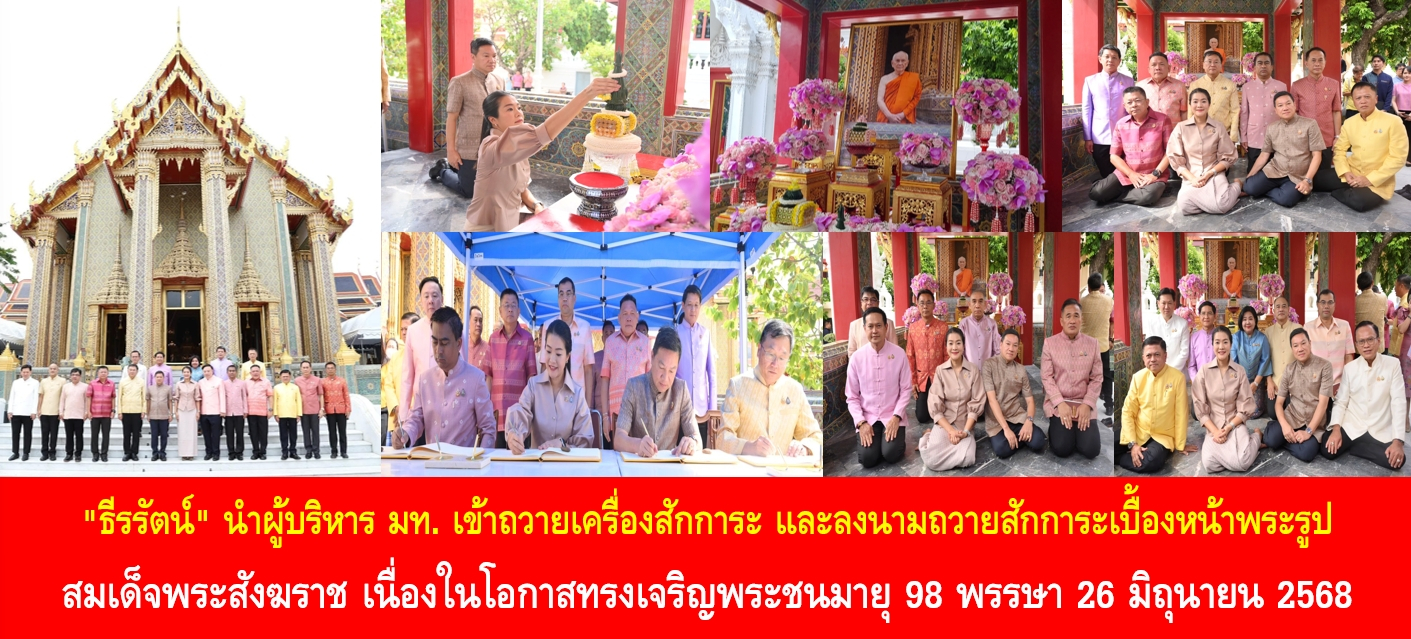 วันนี้ (24 มิ.ย. 68) เวลา 09.00 น. ที่พระวิหาร วัดราชบพิธสถิตมหาสีมาราม ราชวรวิหาร นางสาวธีรรัตน์ สำเร็จวาณิชย์ รัฐมนตรีช่วยว่าการกระทรวงมหาดไทยรักษาราชการแทนรัฐมนตรีว่าการกระทรวงมหาดไทย นำคณะผู้บริหารระดับสูงของกระทรวงมหาดไทย หัวหน้าหน่วยงานรัฐวิสาหกิจ เข้าถวายเครื่องสักการะ และลงนามถวายสักการะเบื้องหน้าพระรูป สมเด็จพระอริยวงศาคตญาณ สมเด็จพระสังฆราช สกลมหาสังฆปริณายก เนื่องในโอกาสทรงเจริญพระชนมายุ 98 พรรษา 26 มิถุนายน 2568 โดยมี นายอรรษิษฐ์ สัมพันธรัตน์ ปลัดกระทรวงมหาดไทย พร้อมด้วยรองปลัดกระทรวงมหาดไทย ผู้ตรวจราชการกระทรวงมหาดไทย ร่วมคณะ
